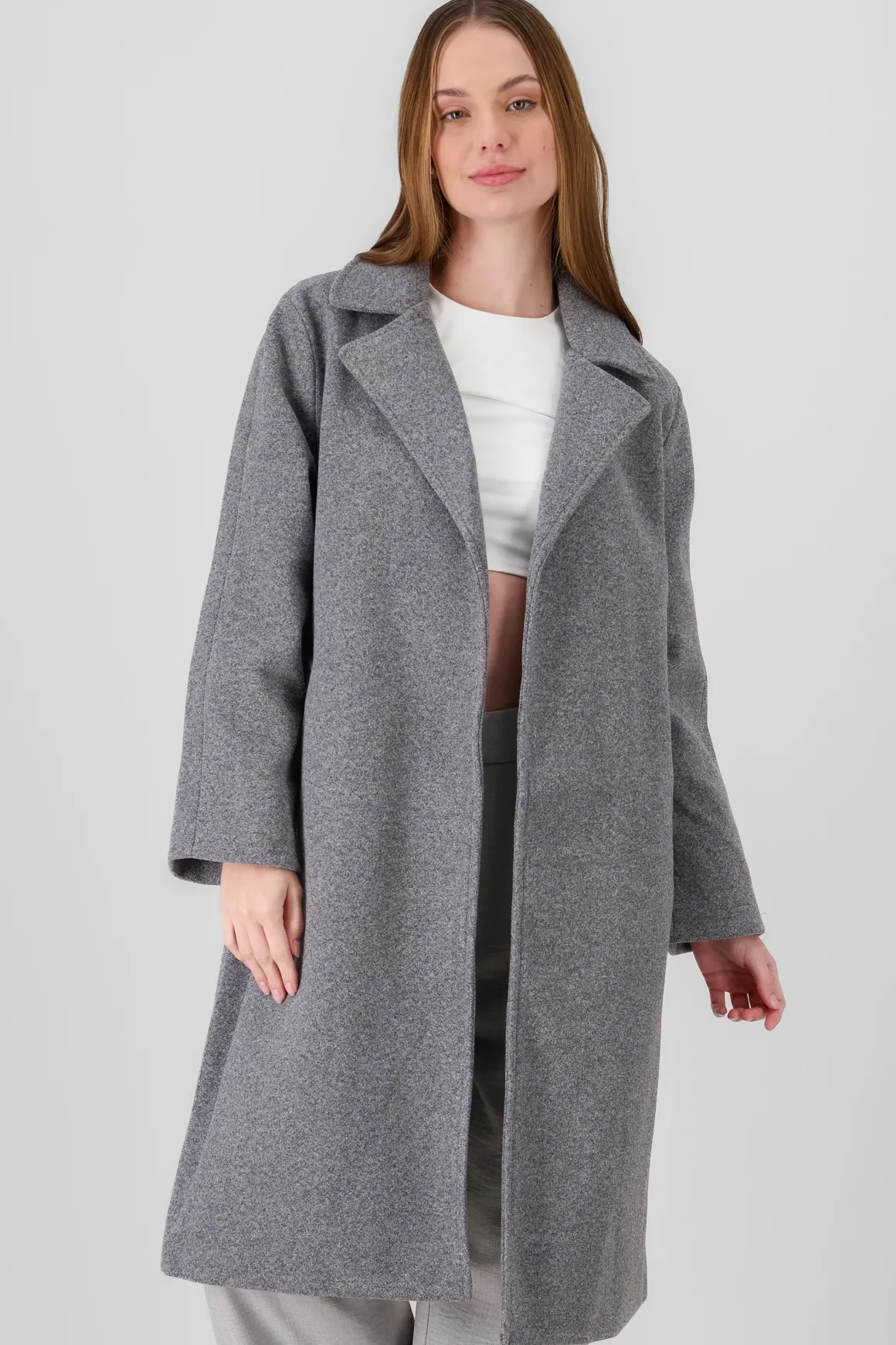 - Abrigo largo de diseño liso.