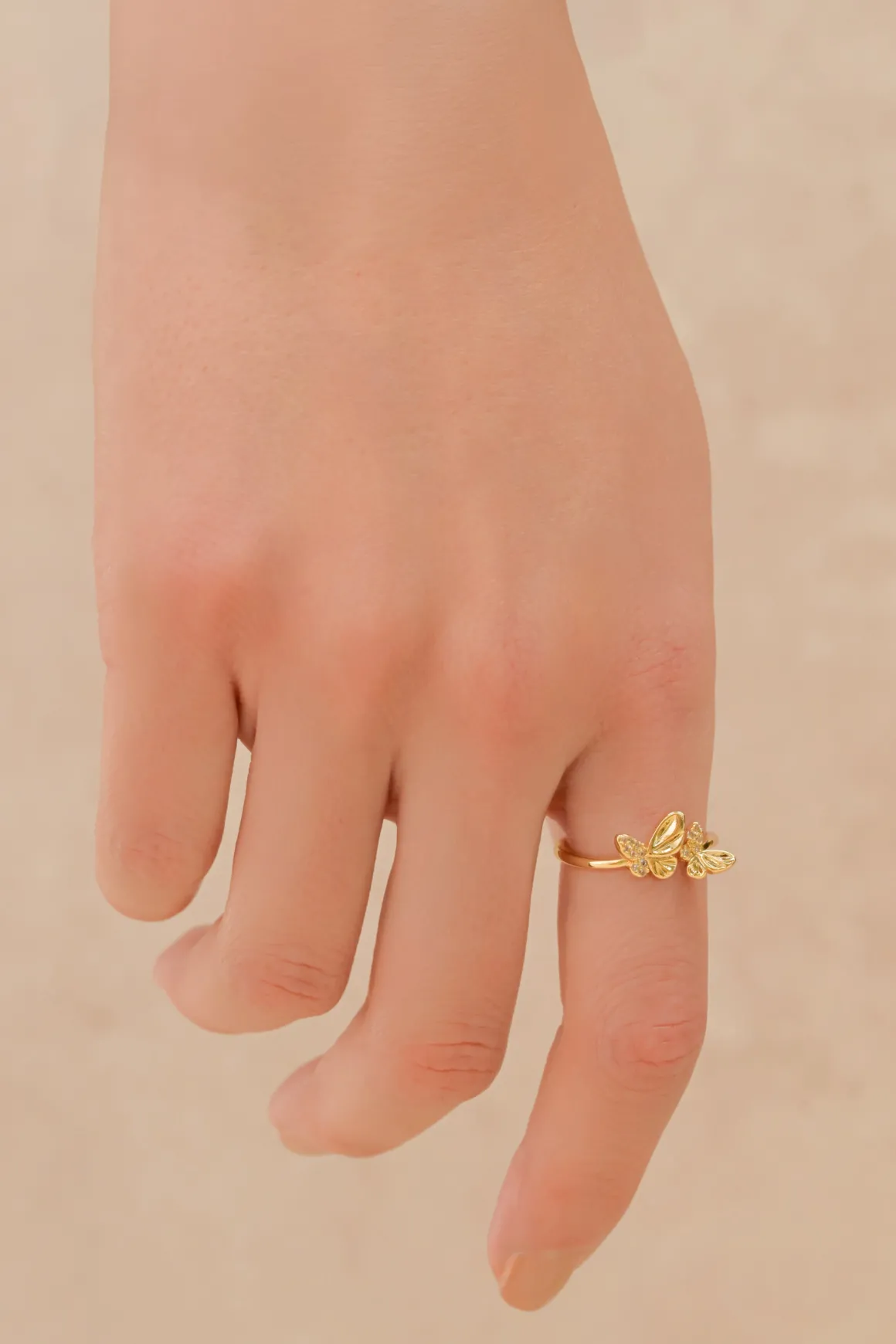 Este anillo con mariposas en vuelo simboliza ligereza y brillo, ideal para quienes buscan una joya llena de gracia.