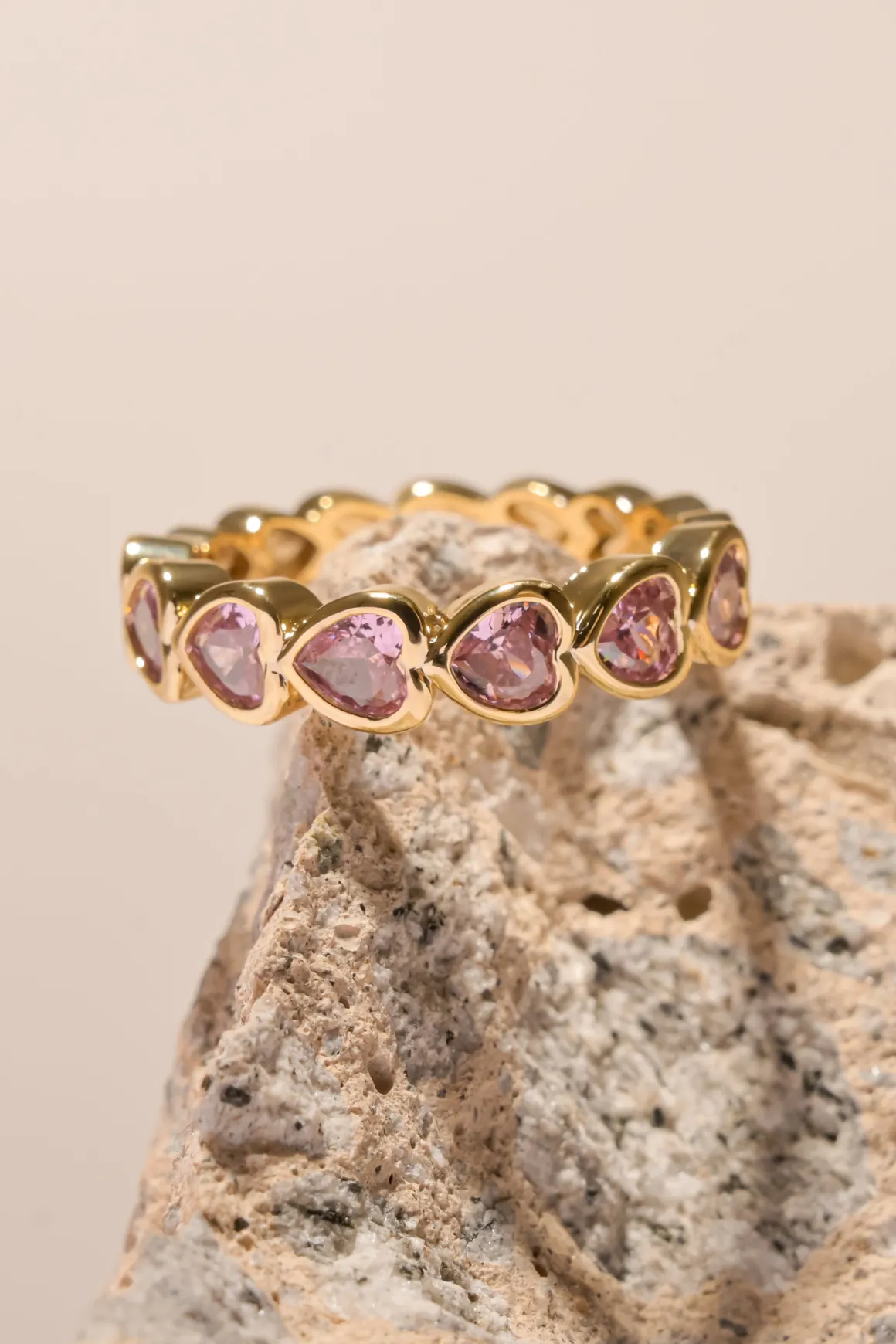 Este anillo rodeado de cristales en forma de corazón es el detalle ideal para iluminar tus manos con un toque romántico.