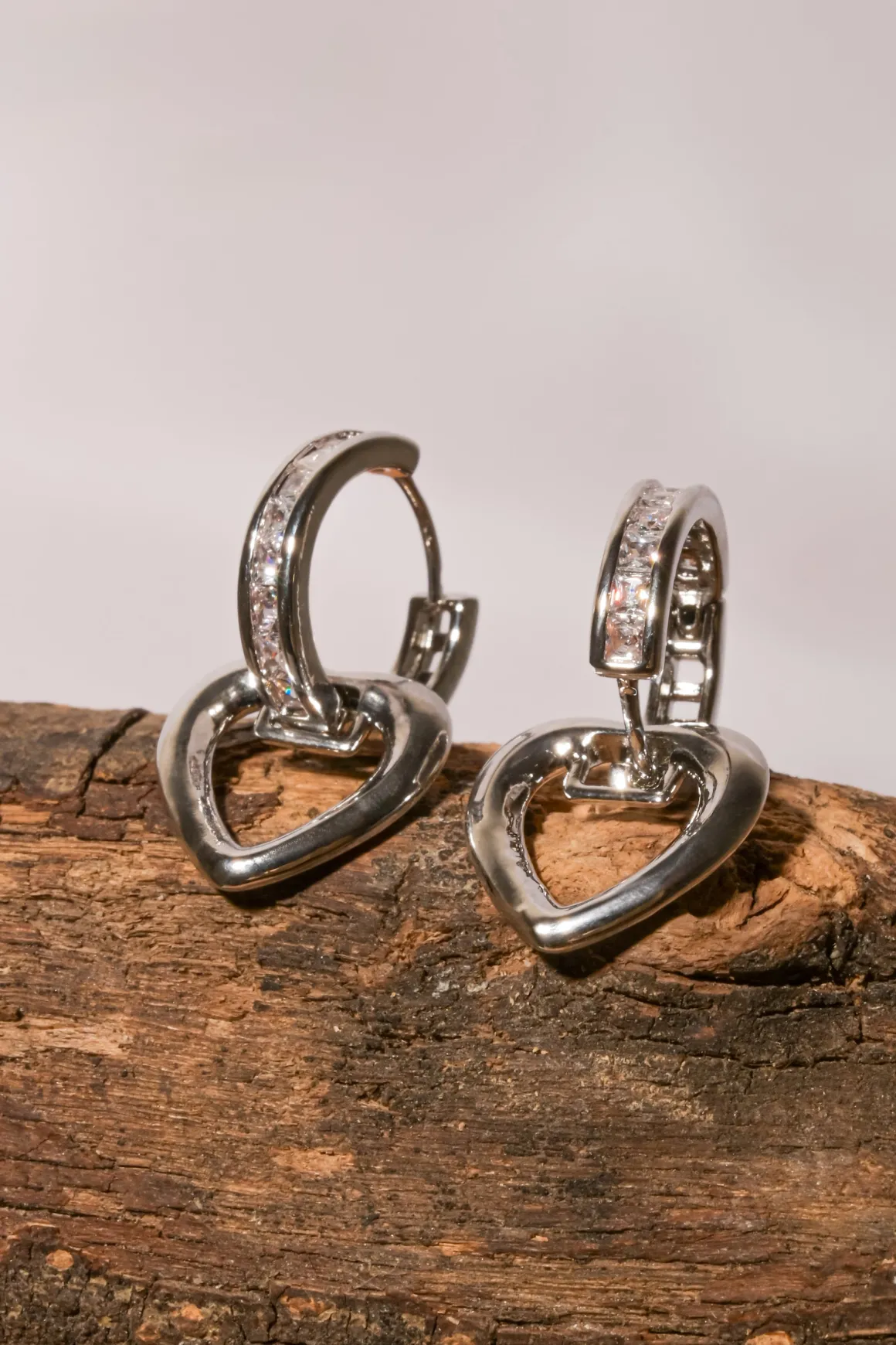 - Corazones colgantes adornados con zirconias y una hilera de cristales deslumbrantes.