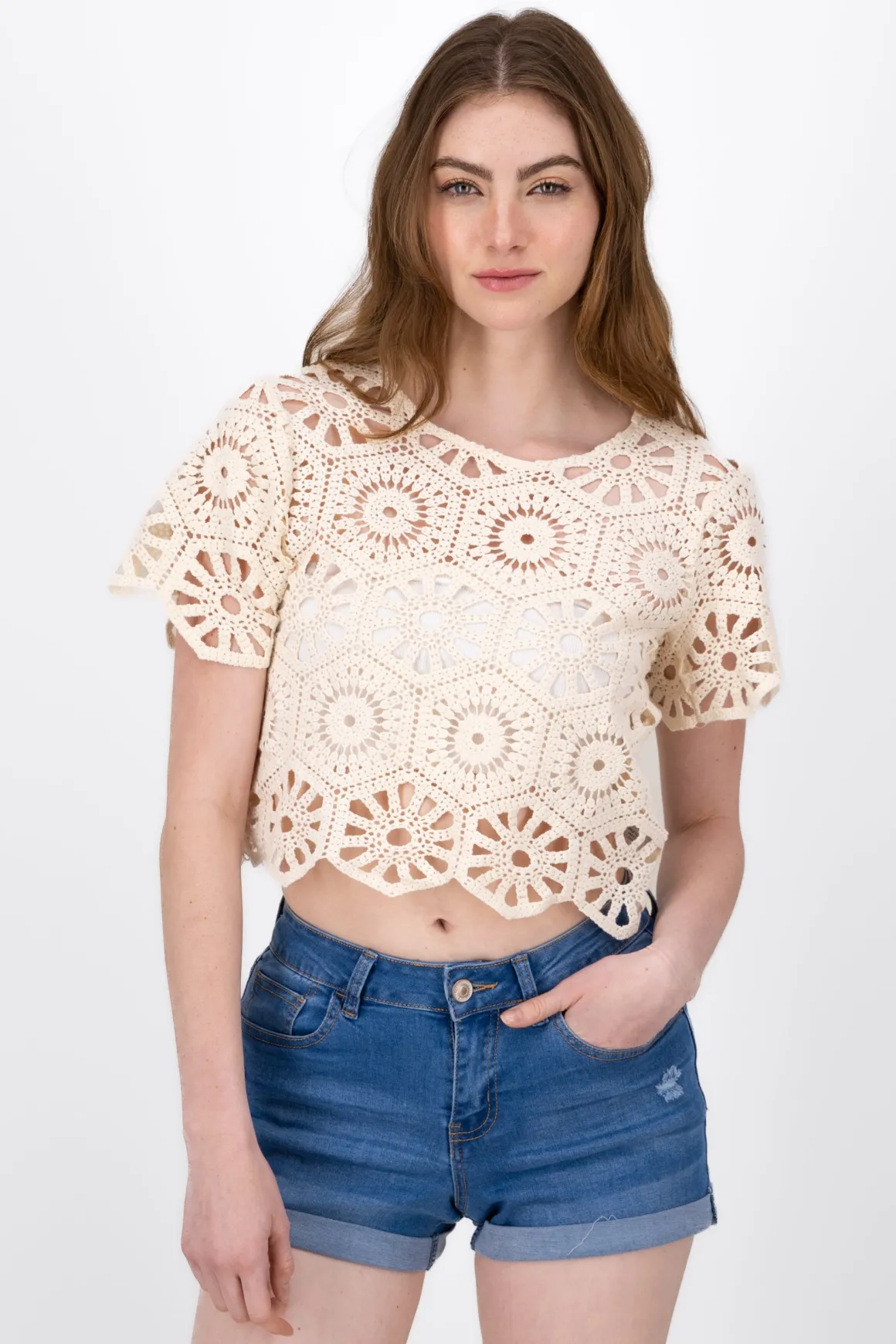 Dale un toque boho a tu armario con esta blusa de diseño crochet. Con sus mangas cortas y cuello redondo, es perfecta para cualquier ocasión casual. Su estilo versátil te permite combinarla con jeans, faldas o shorts para un look fresco y juvenil. Ideal para los días de verano o para agregar una capa texturizada a tu outfit. Añade esta pieza imprescindible a tu colección y luce fabulosa sin esfuerzo.
