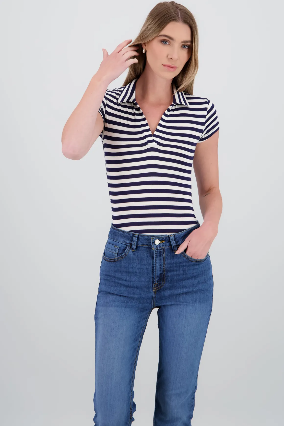 Este body es ideal para darle un toque único y cómodo a tu look. Con su diseño de manga corta y rayas, es perfecto para un look relajado pero con estilo. Combínalo con tus prendas favoritas y estarás lista para cualquier ocasión.