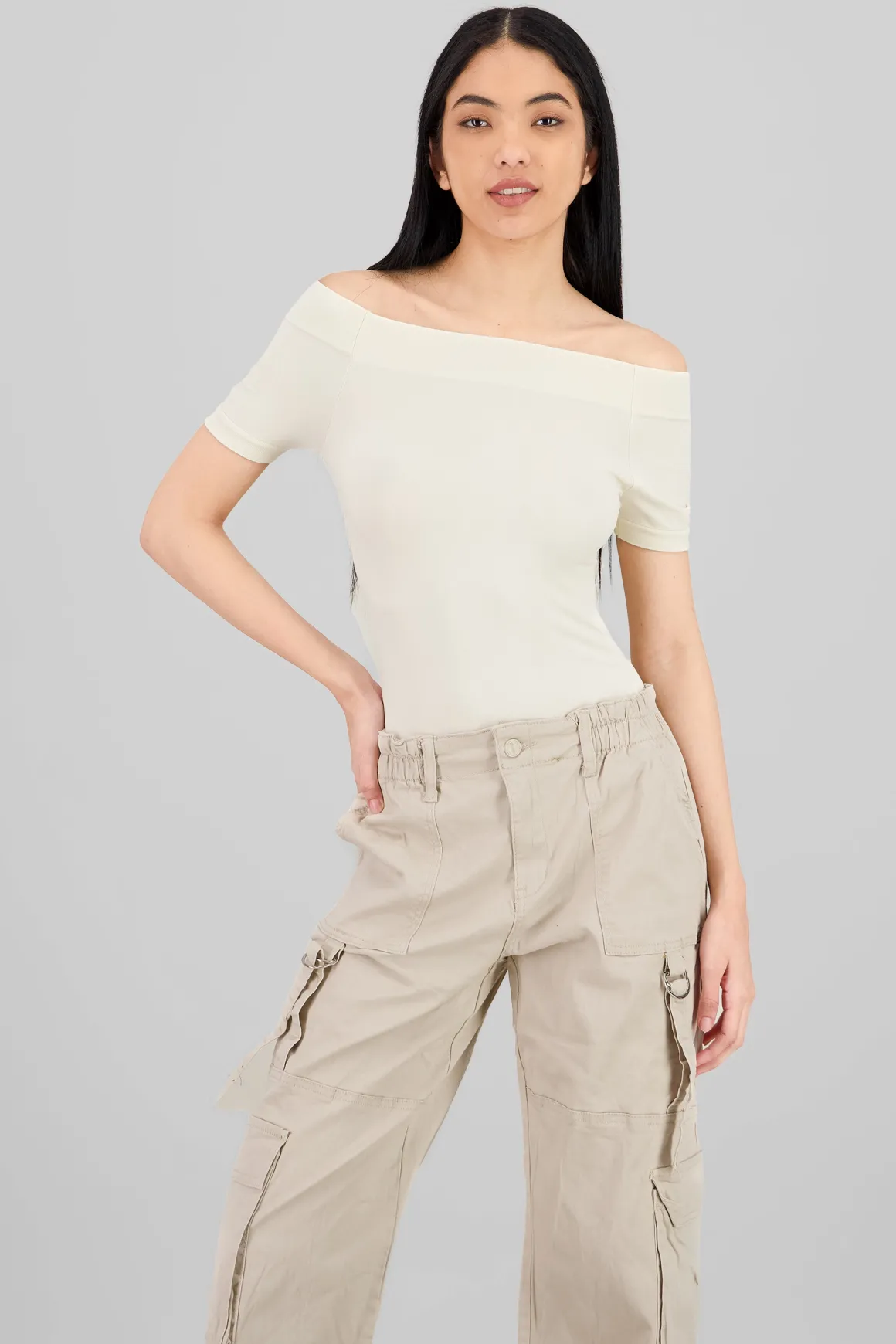 Este bodysuit con hombros descubiertos es la opción perfecta para resaltar tu estilo único. Ideal para cualquier ocasión, se adapta a tu figura y su manga corta le añade comodidad a tu outfit.