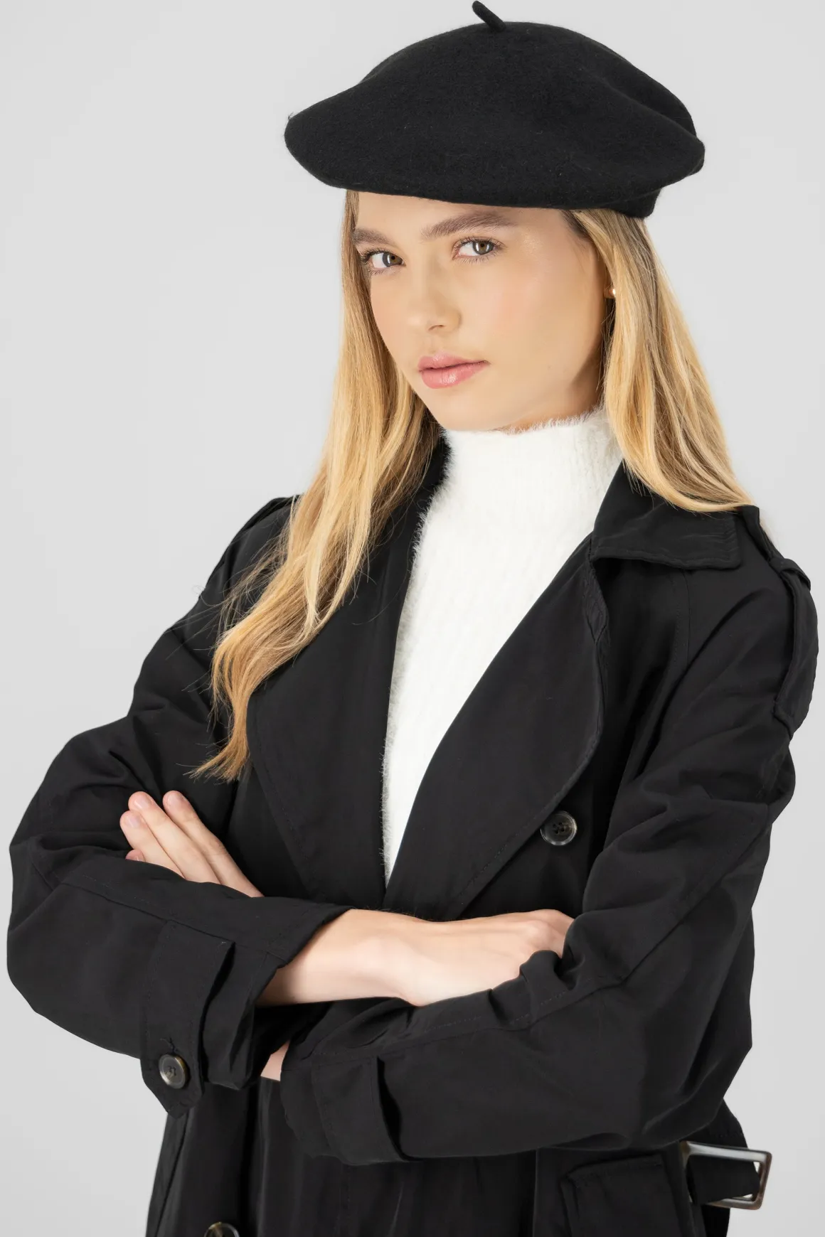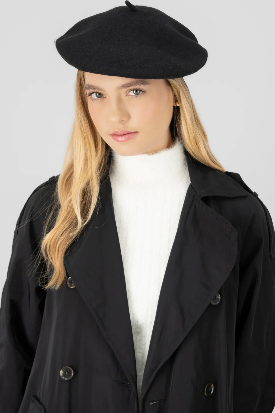 Boina tejida suave con diseño liso monocolor.