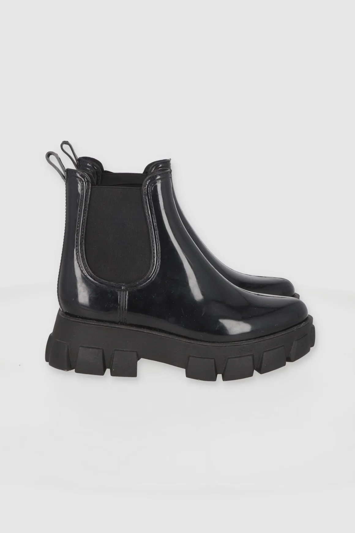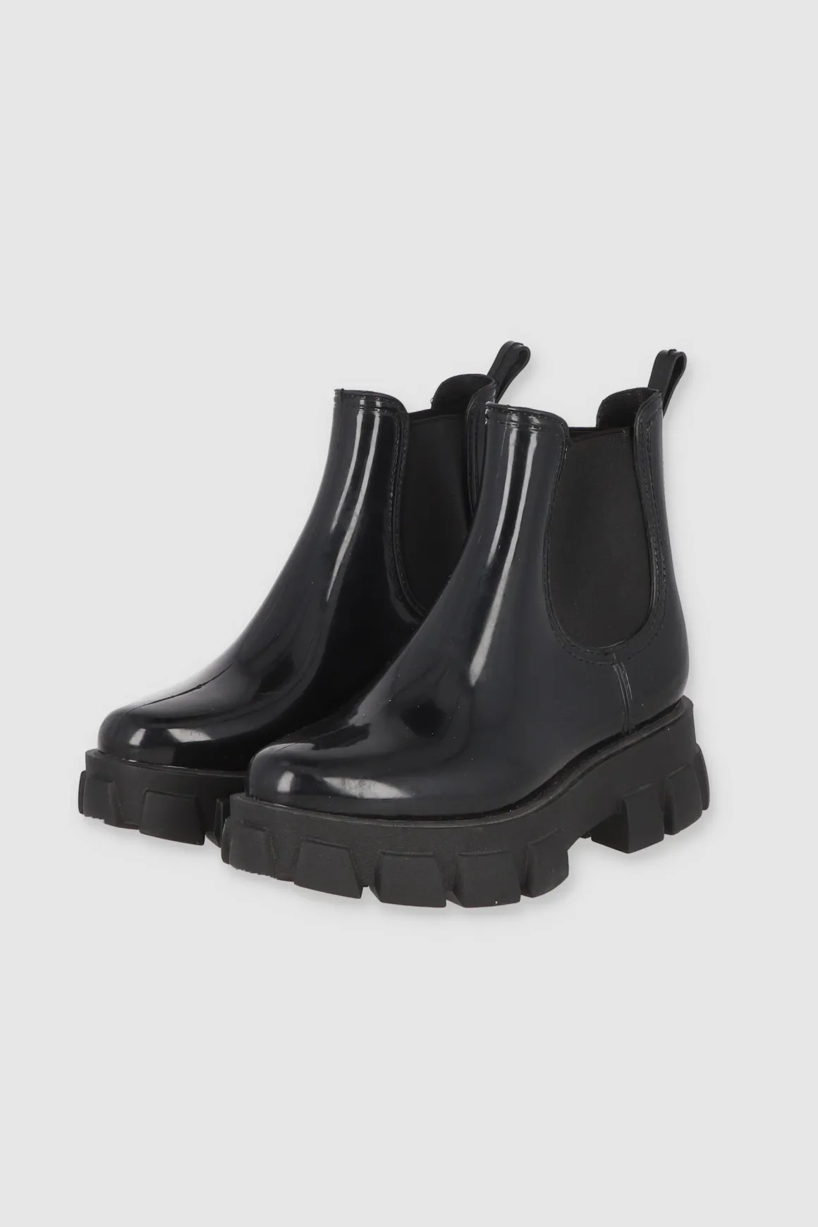 Bota chelsea para lluvia. Suela dentada con volumen.