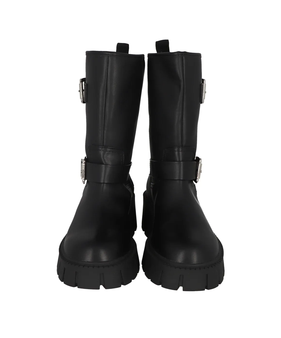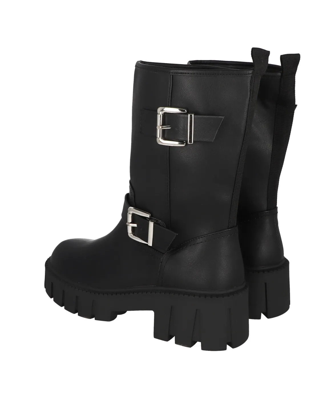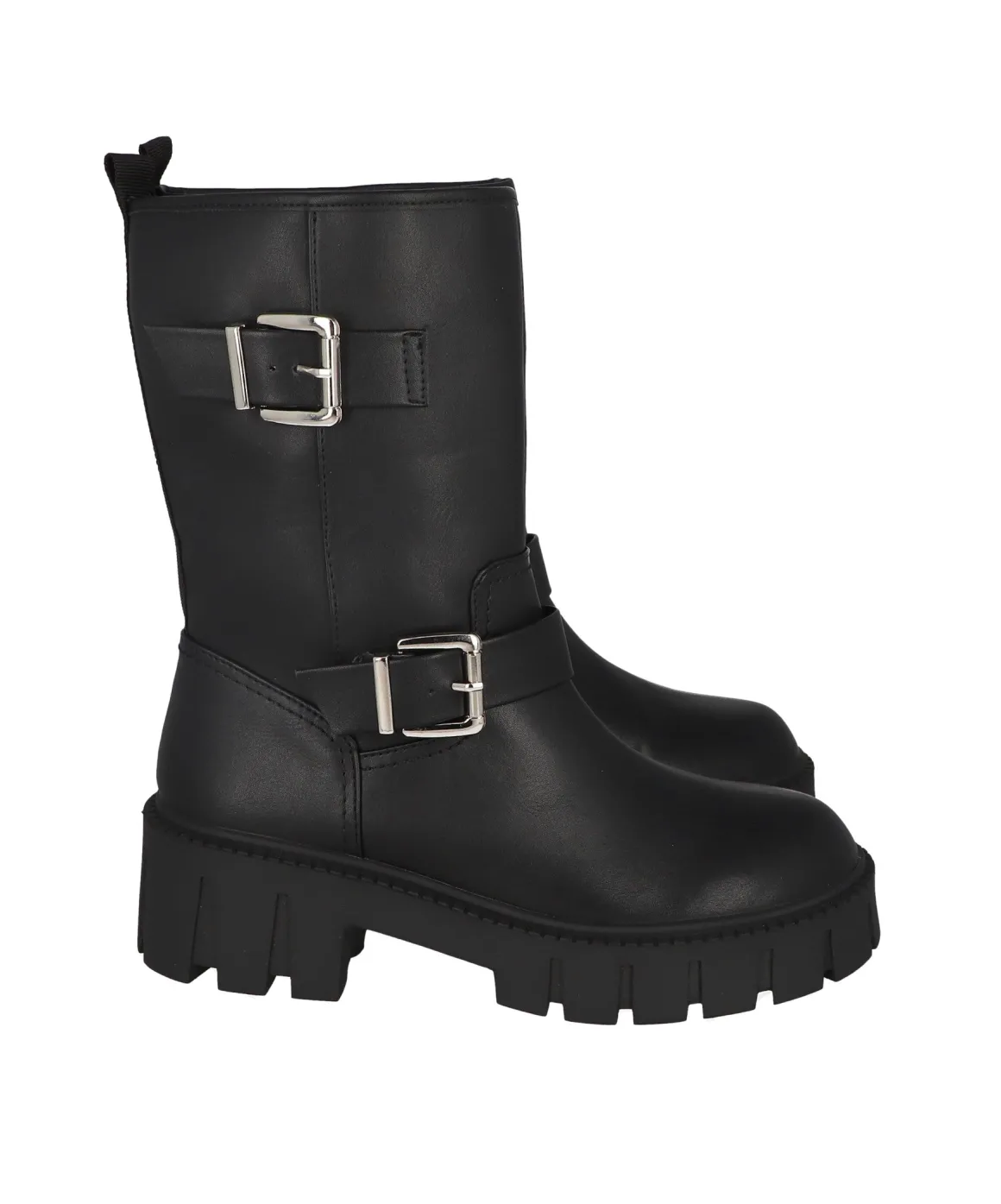 Botas biker de efecto piel con doble hebilla.