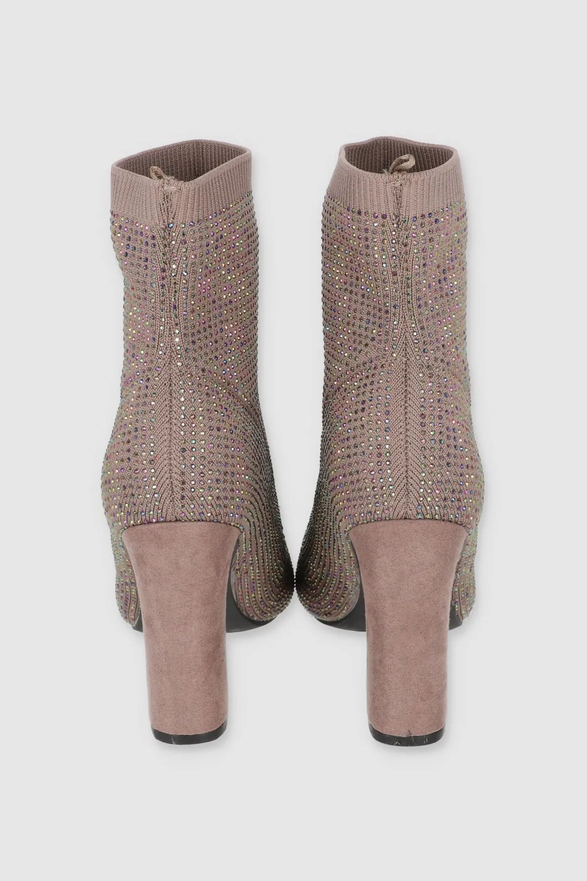 Haz que tus pasos brillen con estos botines tejidos decorados con brillos. Su tacón ancho ofrece comodidad sin sacrificar estilo.