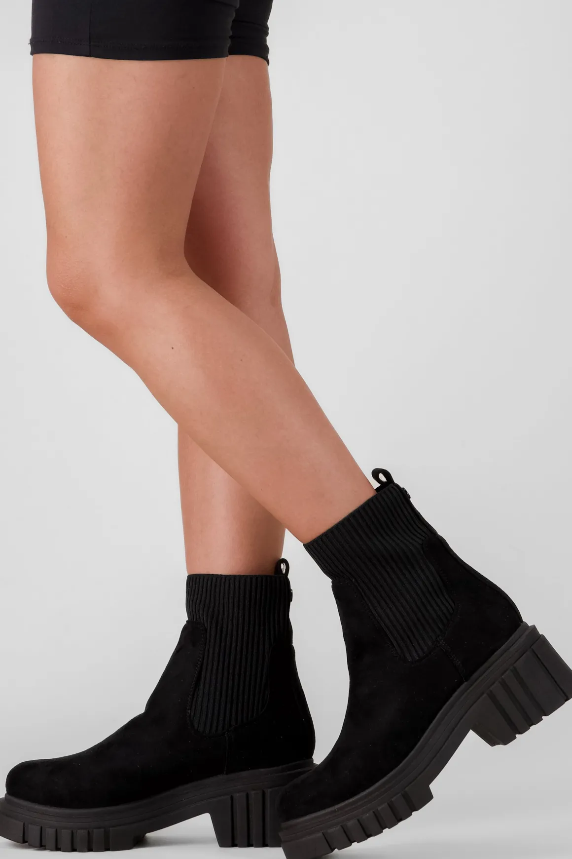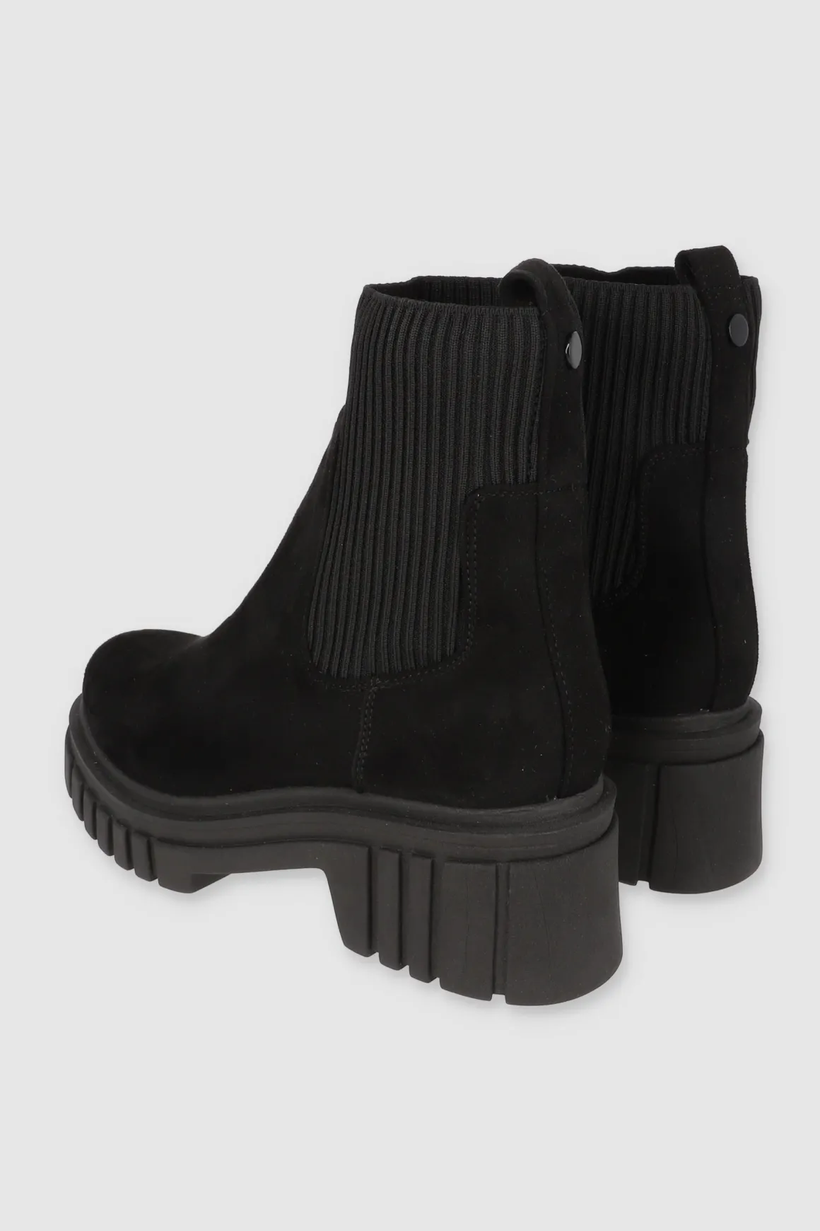 Estos botines chelsea se destacan por su estilo moderno y versátil. La suela dentada y el contraste en el tobillo tipo calcetín los convierten en el complemento ideal para tus looks más casuales. Perfectos para darle un toque audaz a tus atuendos.
