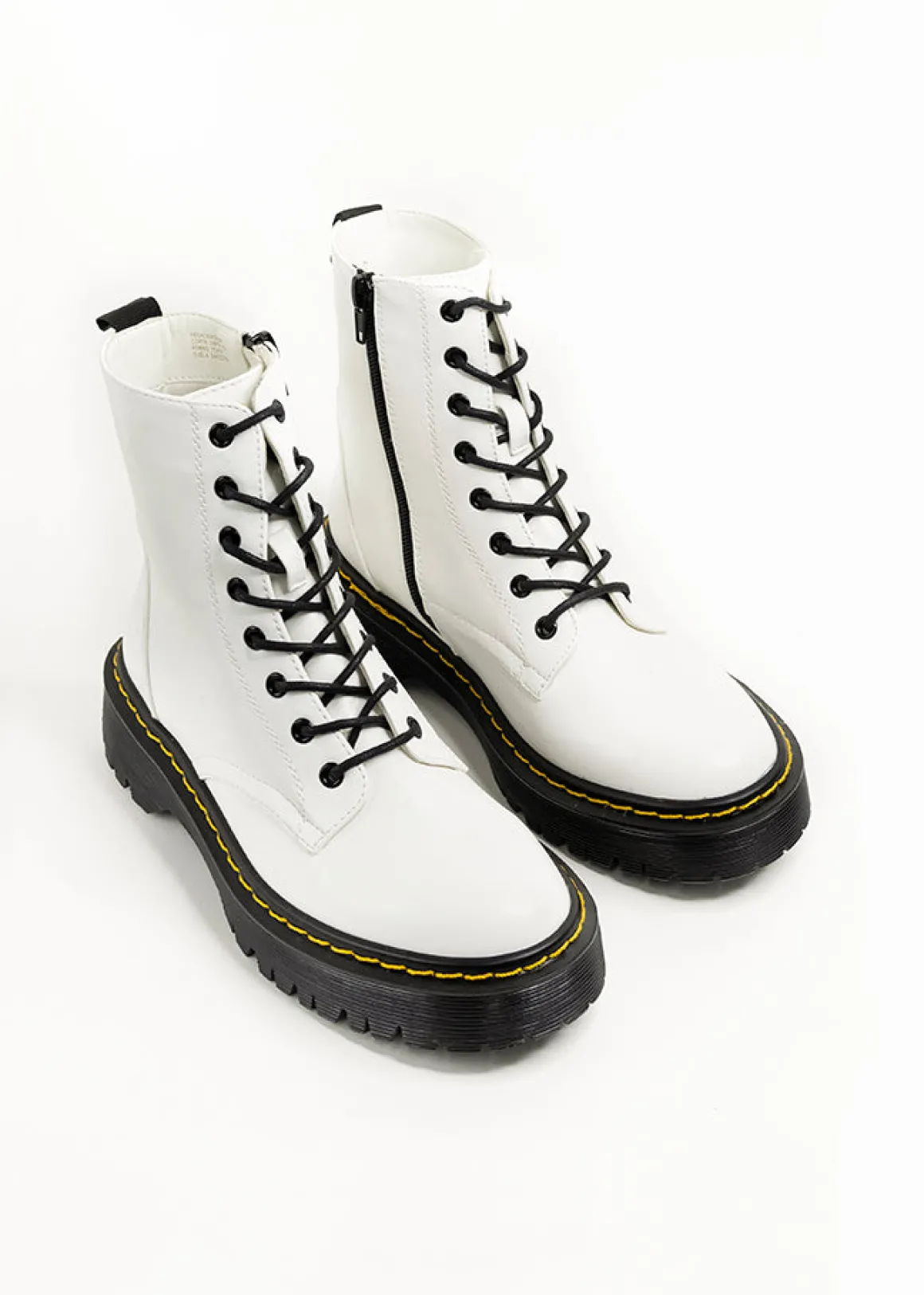 Destaca con estos botines combat que ofrecen comodidad y estilo. El efecto piel les da un aspecto moderno. Con agujetas y cierre de cremallera en los laterales, estos botines son fáciles de poner y quitar, lo que los hace ideales para un estilo de vida activo y urbano.