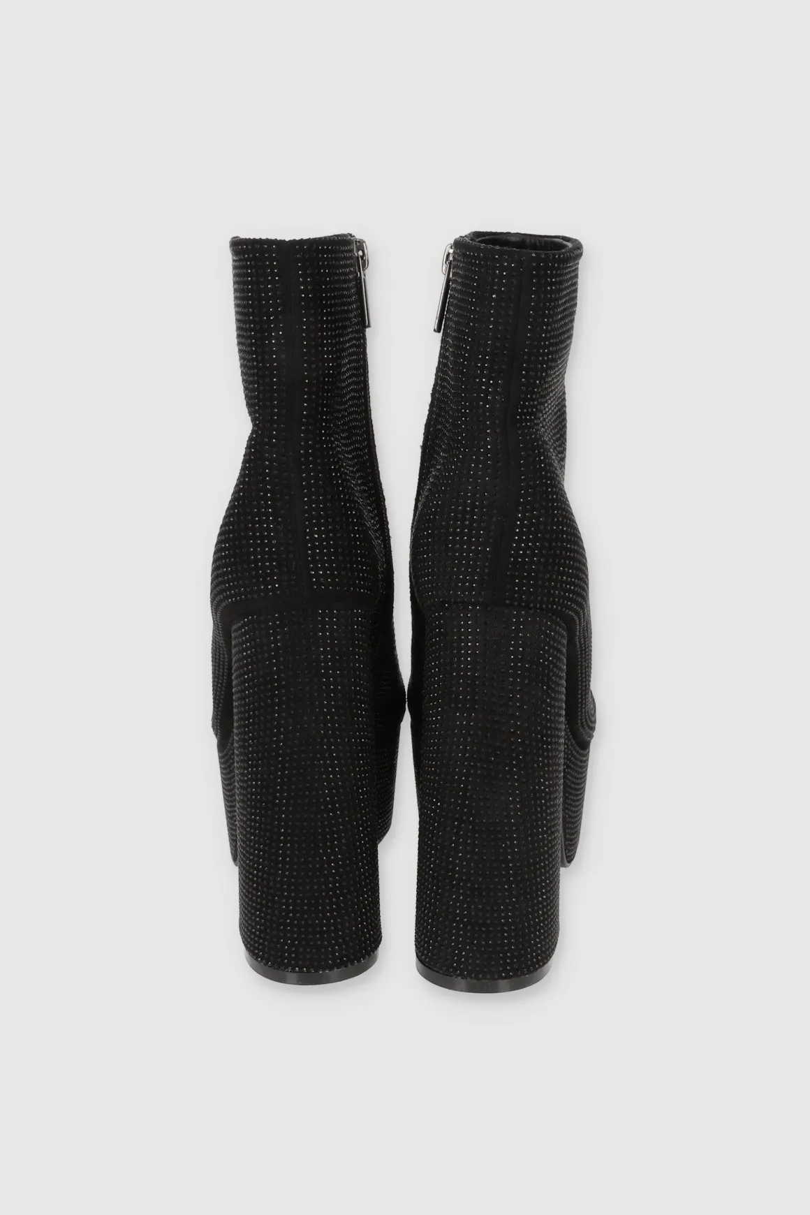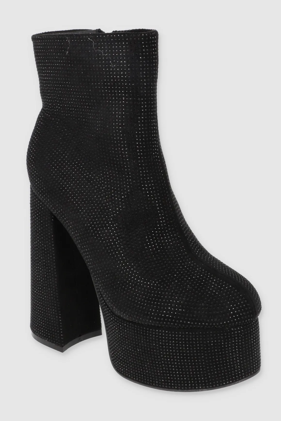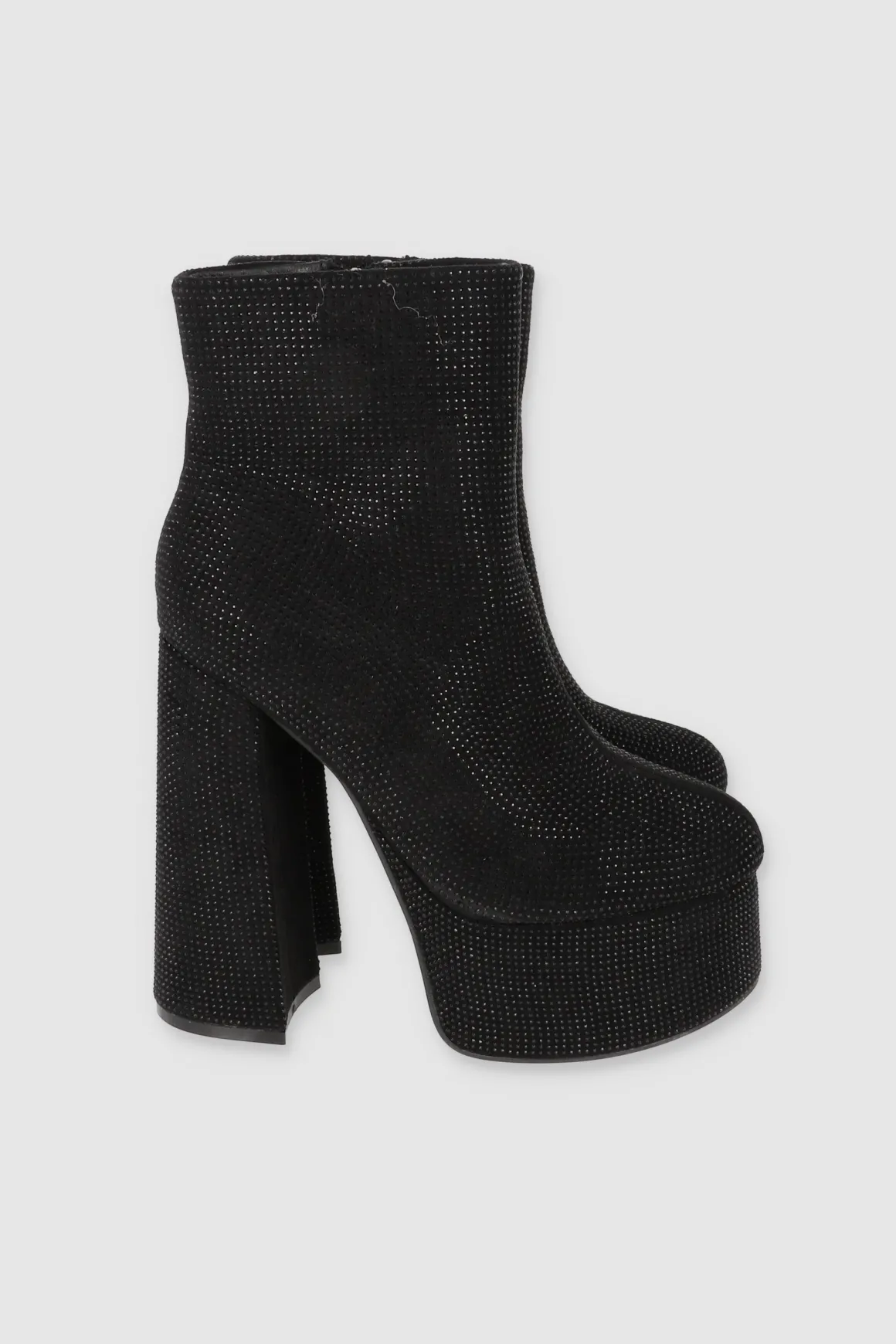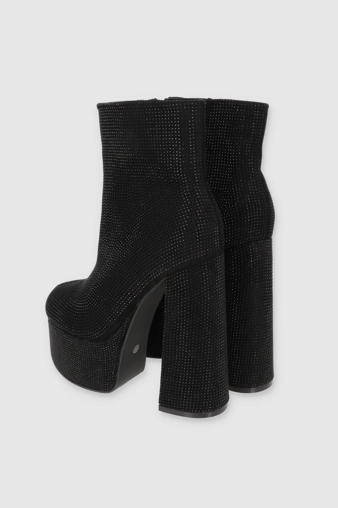 Descubre nuestro increíble botín de tacón con plataforma que te brinda comodidad y estilo en cada paso. Con un diseño de brillos y costuras, este botín muestra tu personalidad única con cada paso que das.