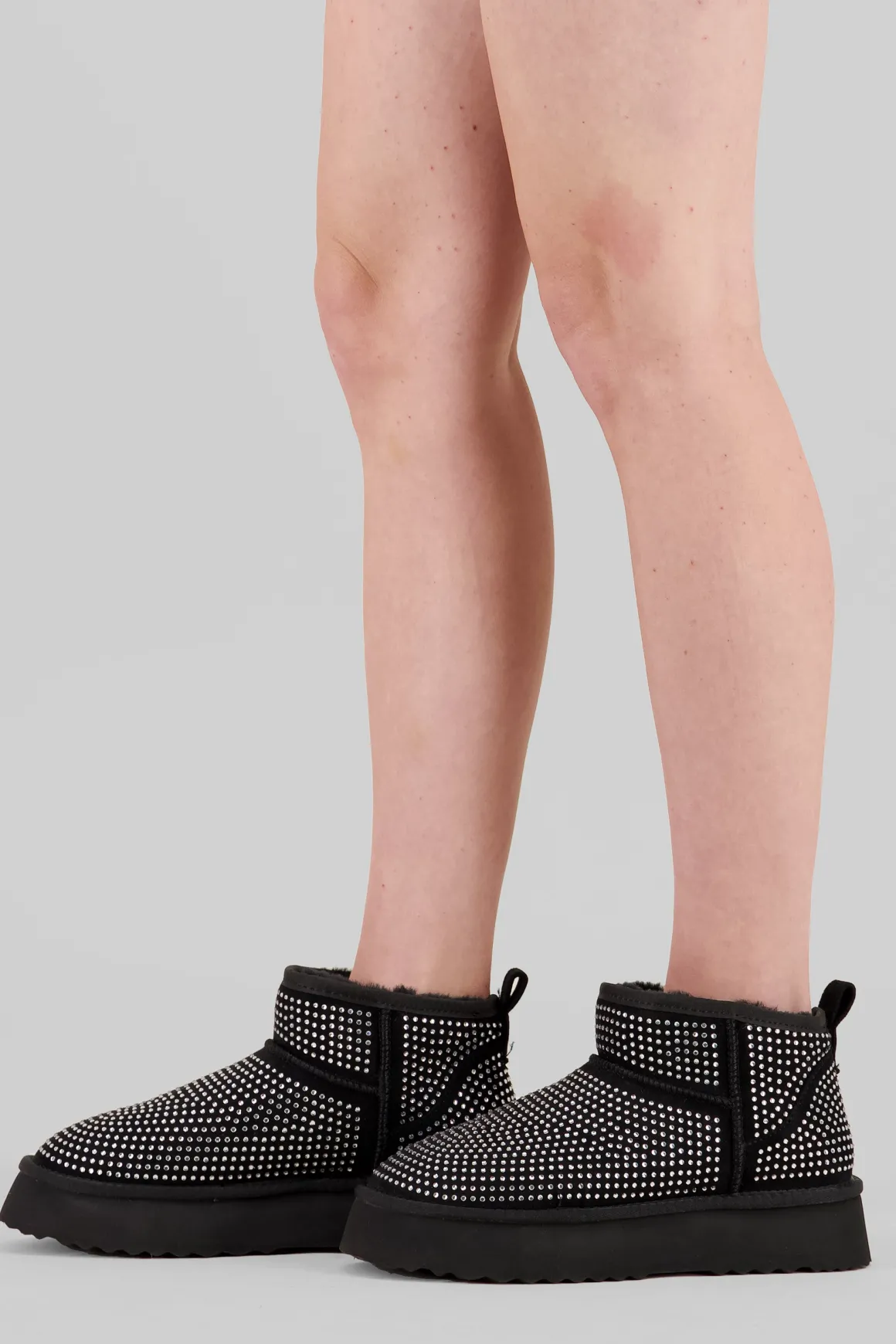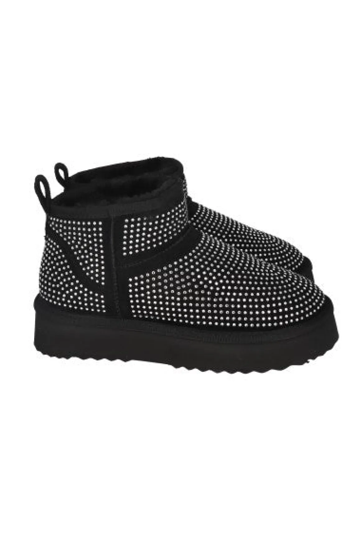 Impulsa tu estilo con estos llamativos botines. Con tiradores superiores para un ajuste seguro, forro interno de peluche para mayor comodidad y una aplicación total de brillos que te hará destacar en cualquier ocasión. Estos botines son la combinación perfecta de moda y comodidad, elevando instantáneamente cualquier atuendo.