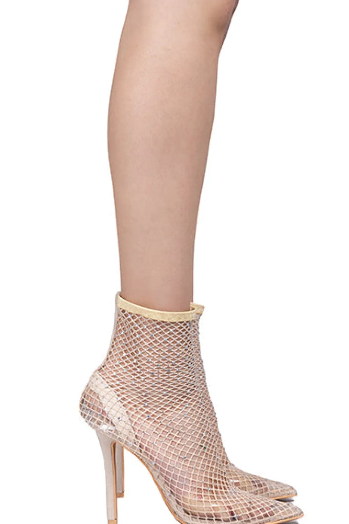 Destaca con estilo con estos botines pointy con brillos. El tacón delgado y la tira de efecto piel en el tobillo ofrecen un ajuste elegante y cómodo. La cinta transparente sobre el empeine añade un toque moderno, mientras que la capa superior de red con aplicación de brillos brinda un aspecto único y llamativo. Estos botines son la elección perfecta para quienes desean destacar en cualquier ocasión.