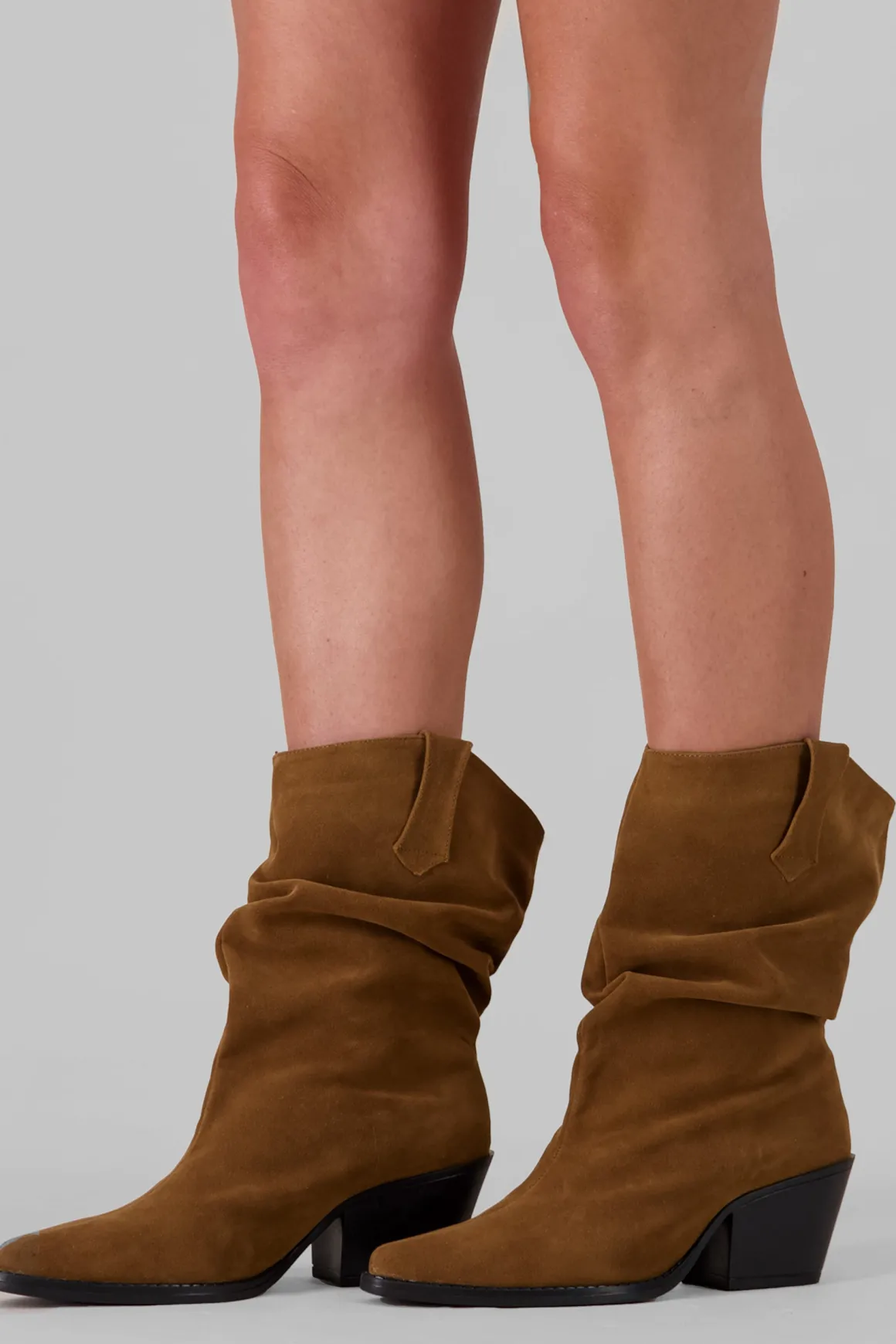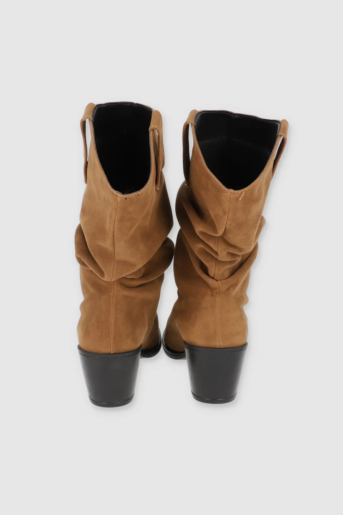 Estos botines puntales slouchy con textura durazno son la mezcla perfecta entre estilo y comodidad. Su tacón ancho bajo los hace ideales para el día a día. Combínalos con vestidos o pantalones para un look chic.