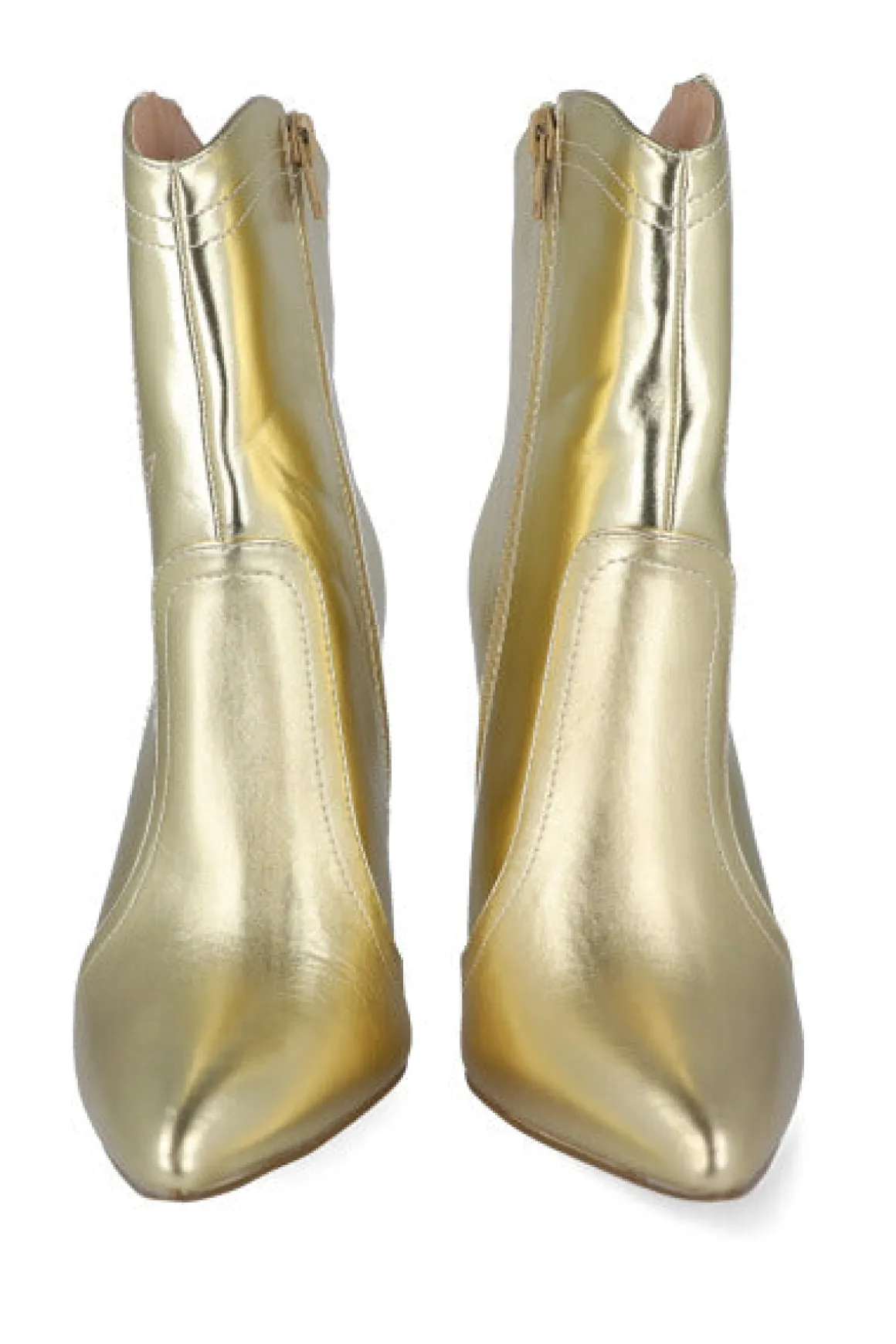 Botines con tacón delgado de efecto piel con diseños bordados. Cierre lateral mediante cremallera.