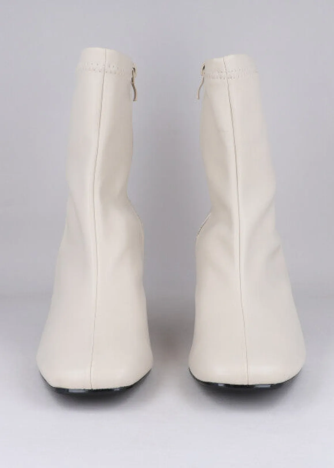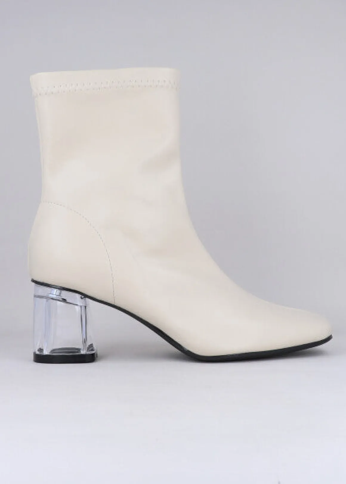 Botín efecto piel con punta rebanada. Tacón transparente. Cierre con zipper en los laterales.