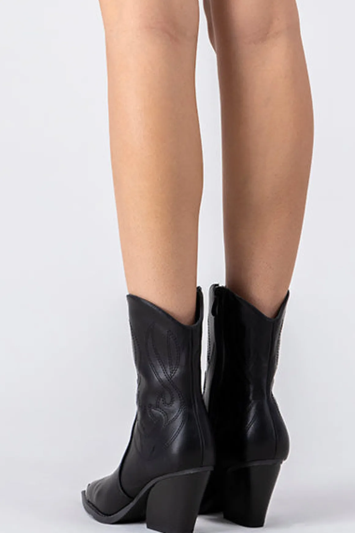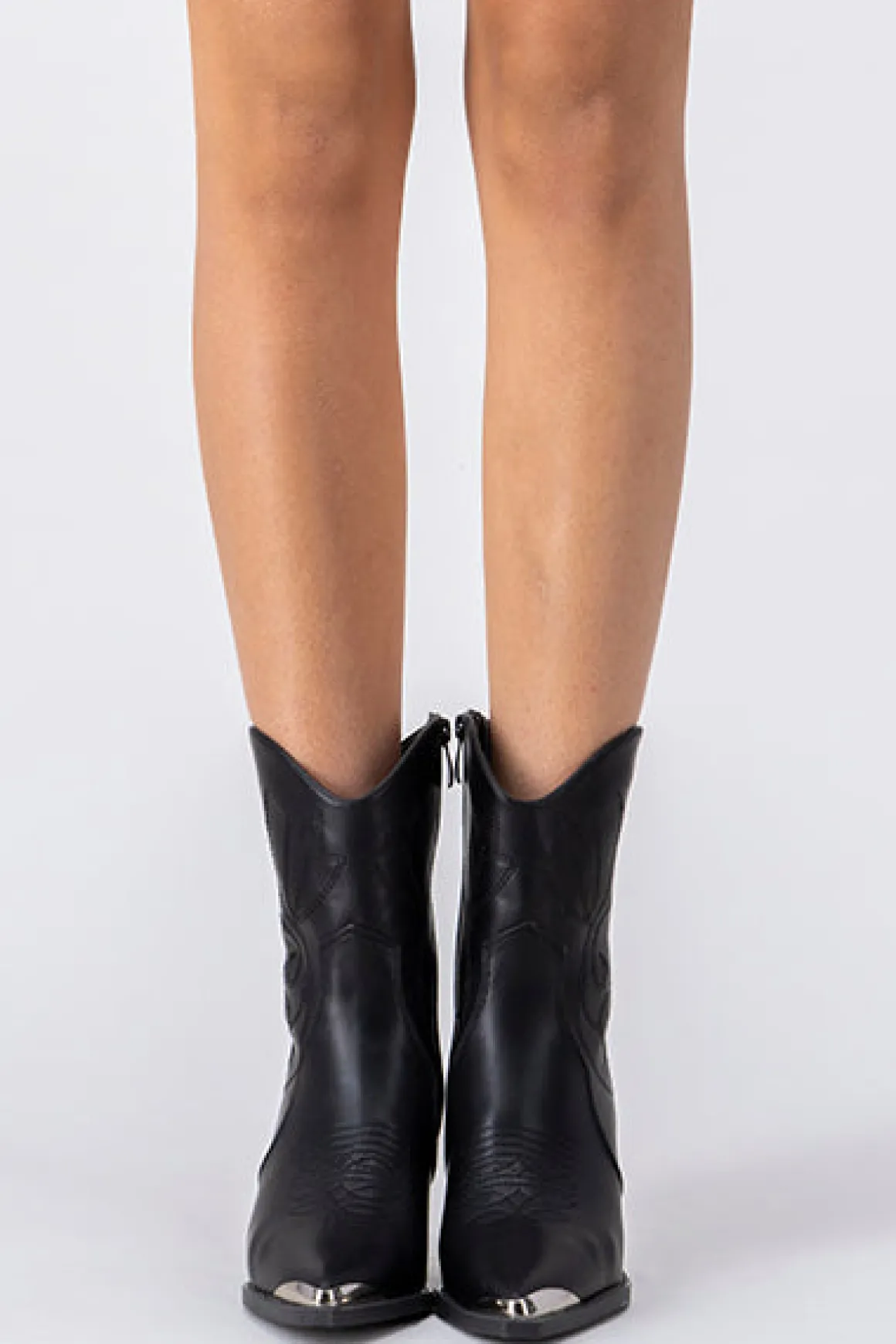 Botín vaquero de tacón con punta metálica. Alto 8.5 cm x Ancho 3.3 cm