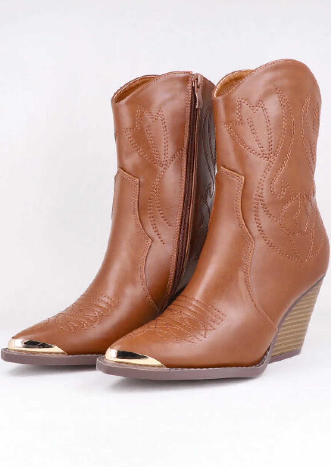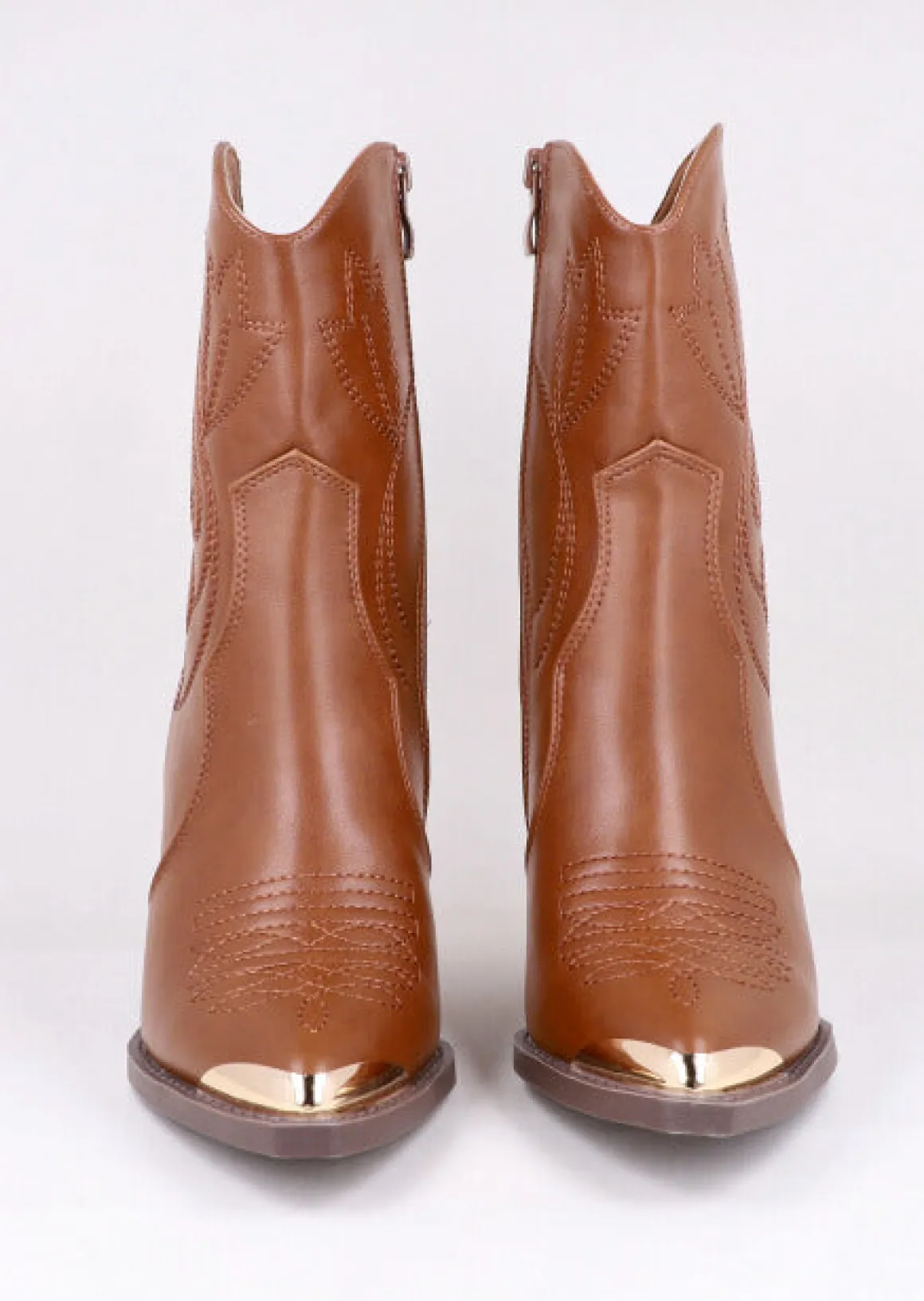 Botín vaquero de tacón con punta metálica. Alto 8.5 cm x Ancho 3.3 cm