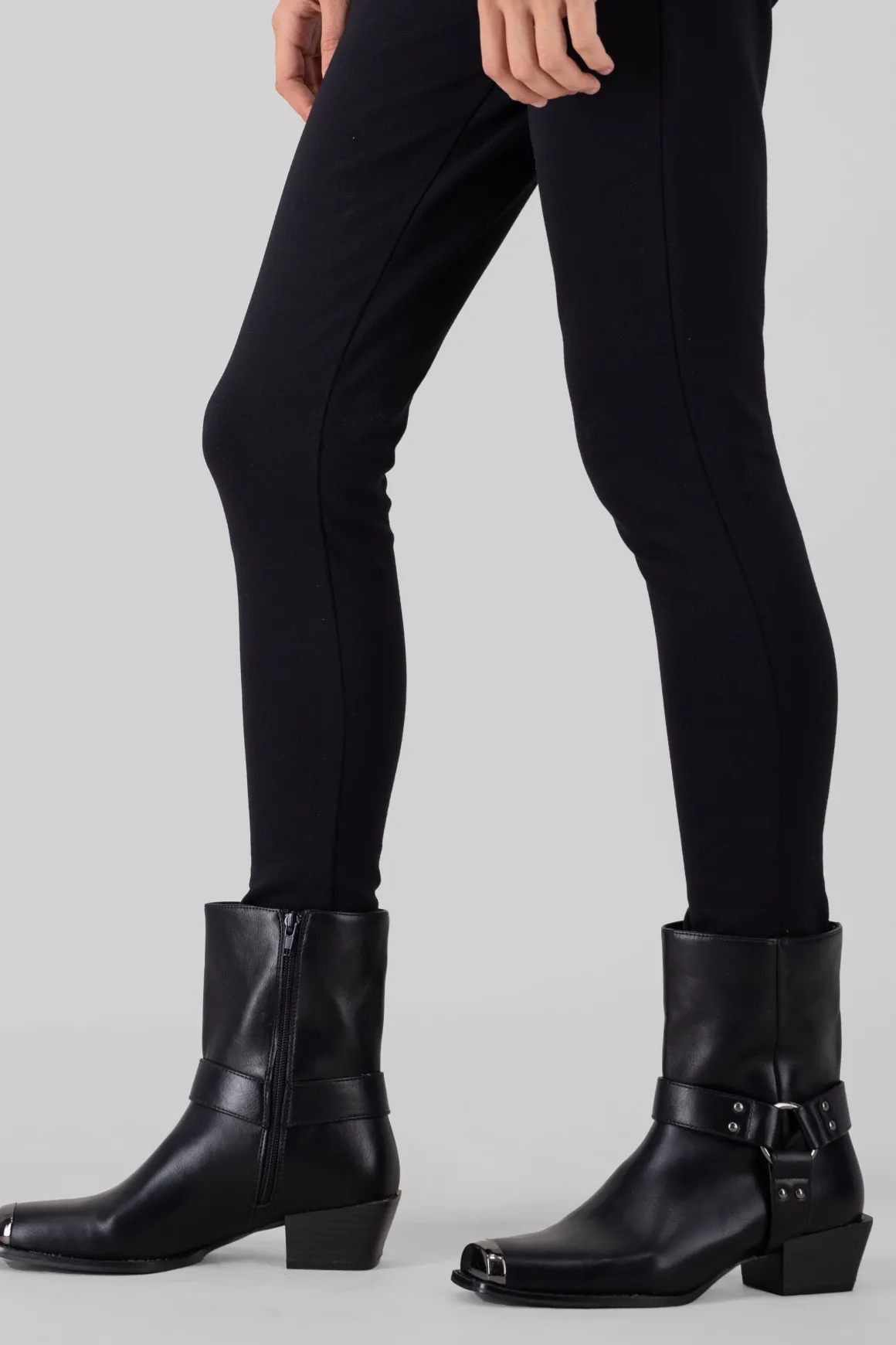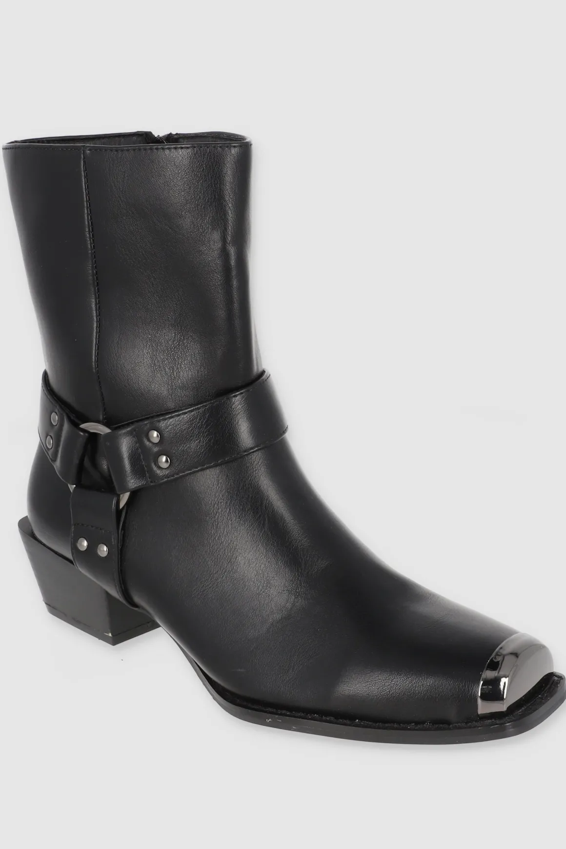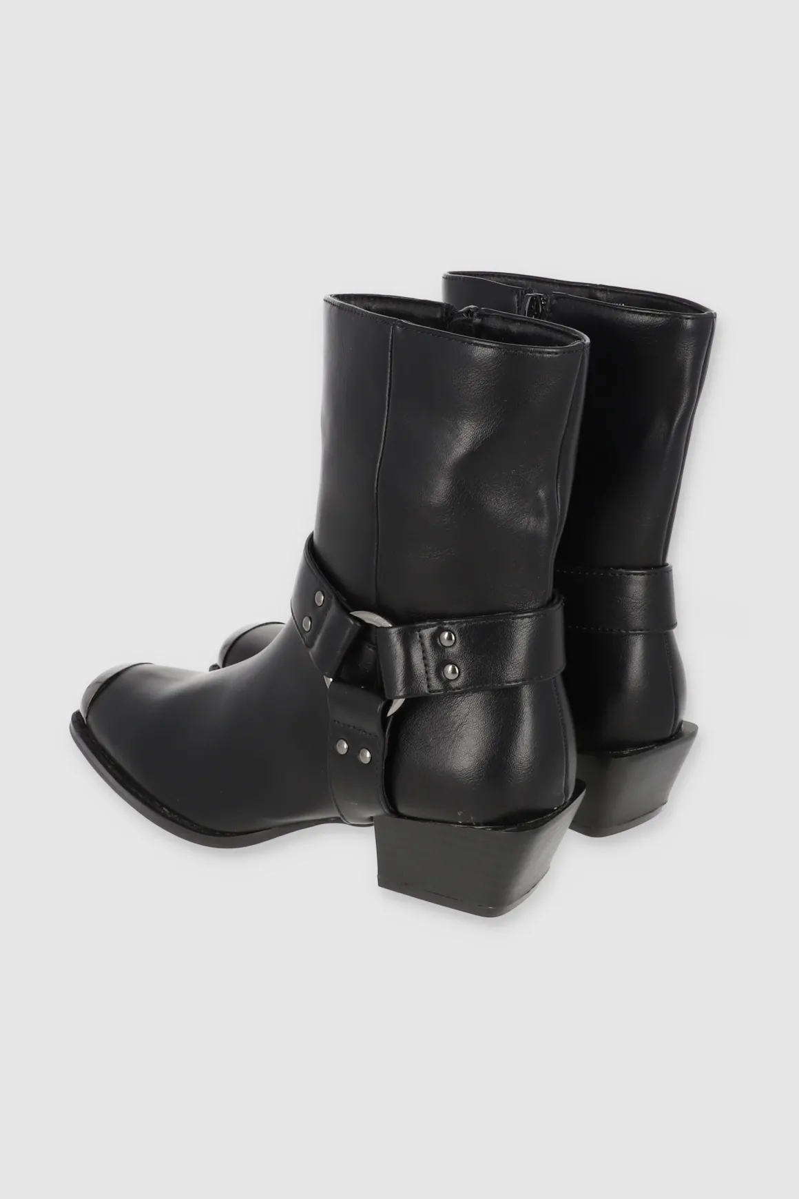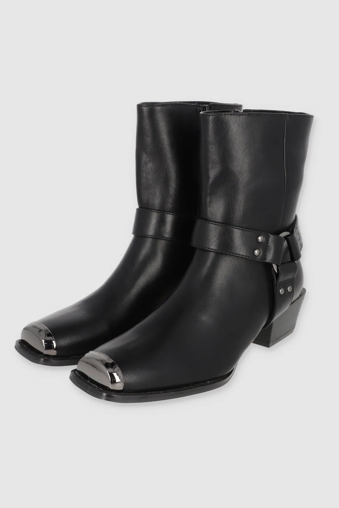 Estos botines vaqueros con punta cuadrada metálica son el toque western que necesitas. Las cintas laterales con aro metálico y el tacón ancho bajo le dan un estilo único y moderno. ¡Combínalos con faldas o jeans y dale un toque vaquero a tu outfit!