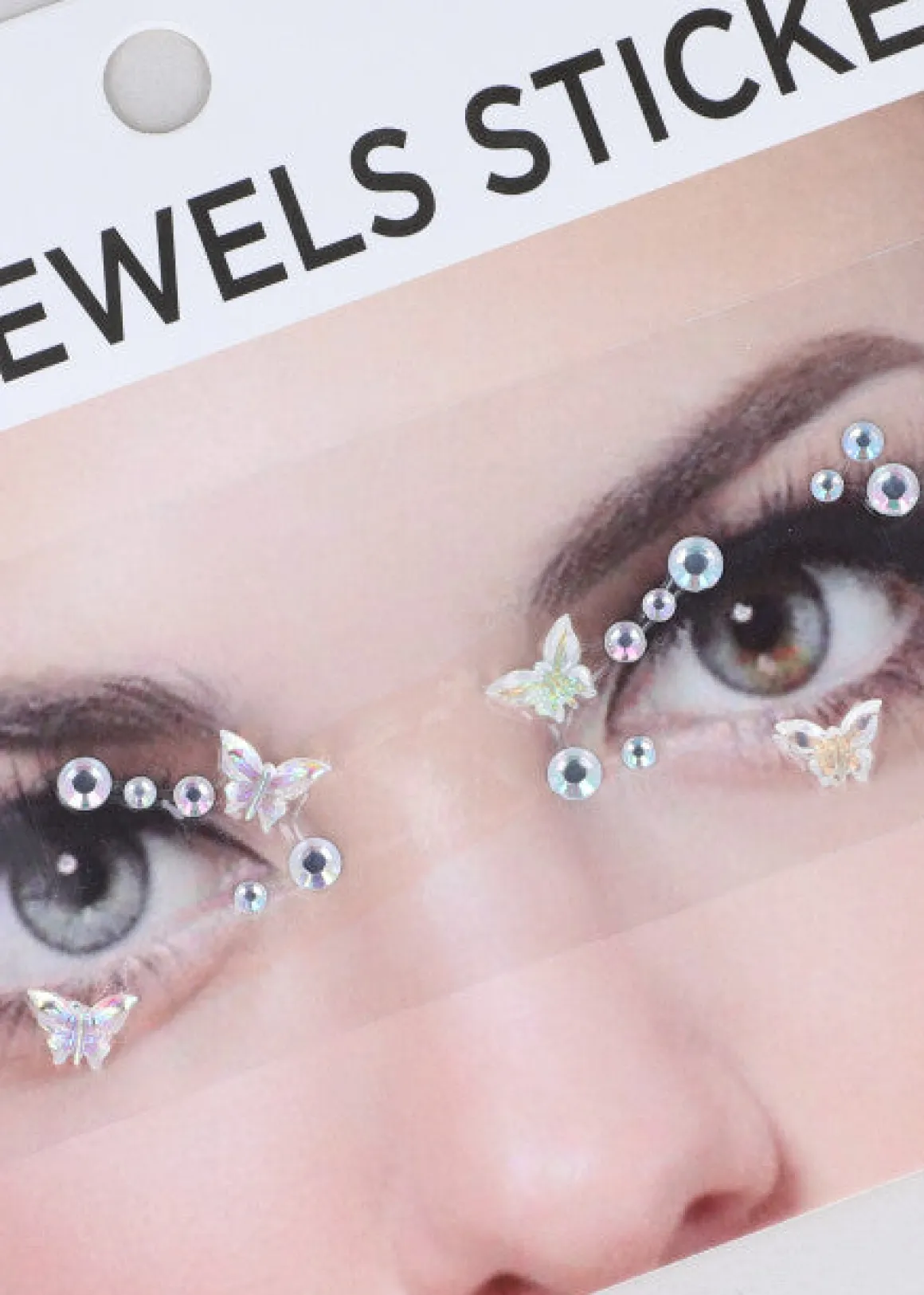 1 plantilla de brillos faciales adhesivos para ojos de mariposas y piedras.