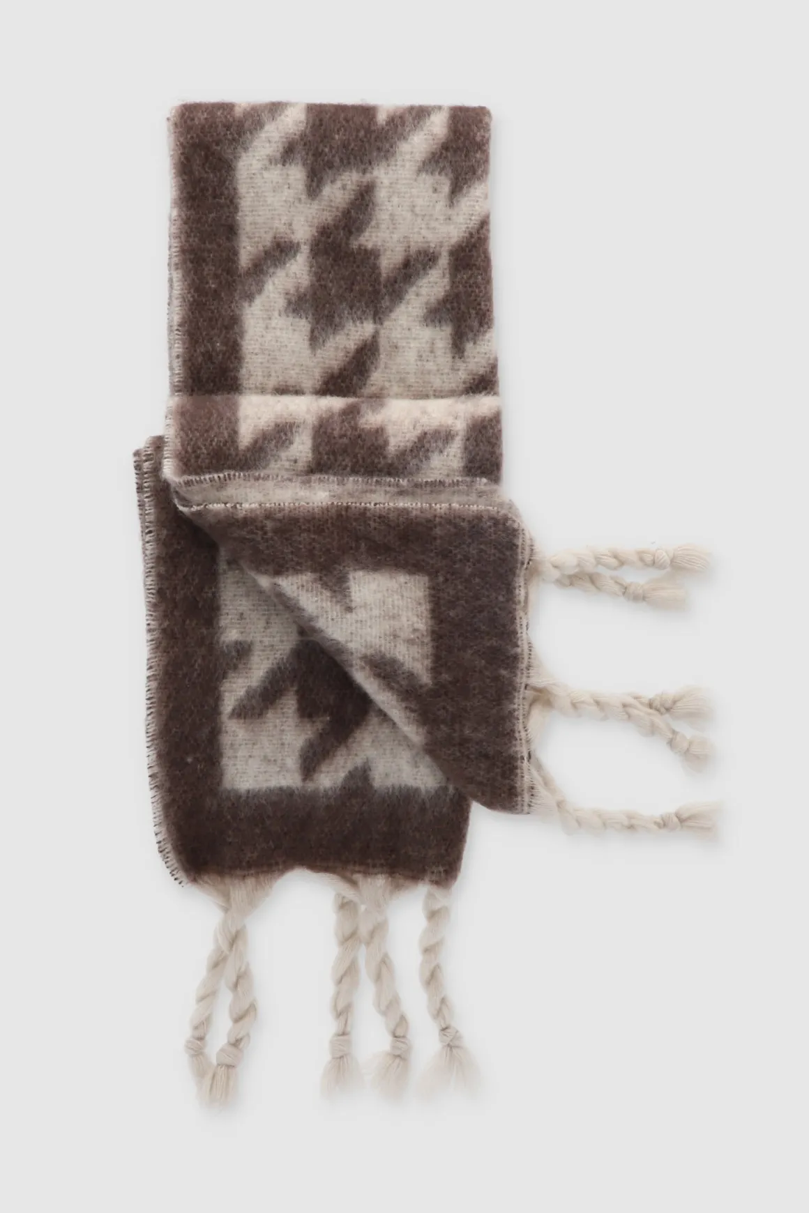Bufanda en tejido suave con diseño de pata de gallo.