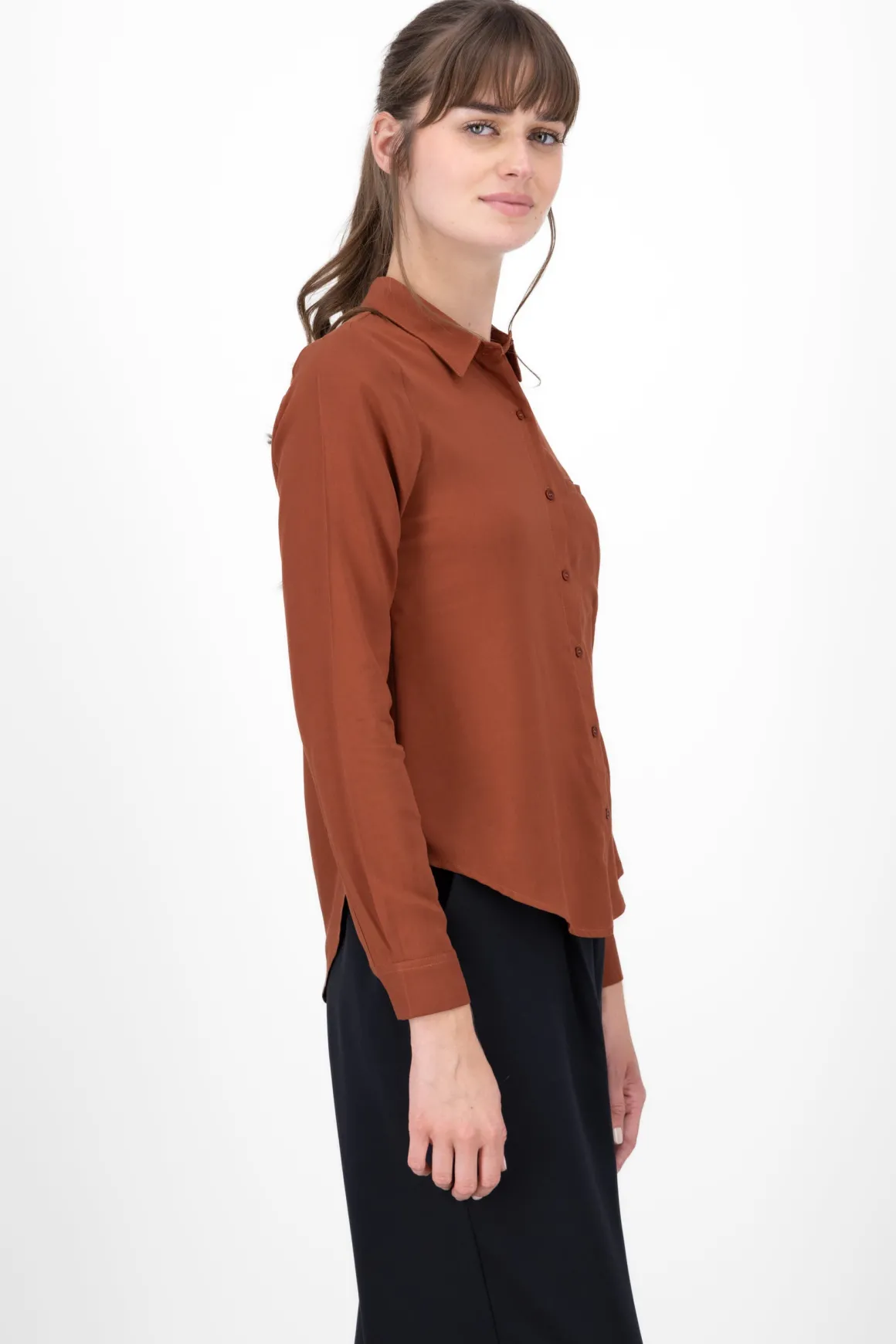 Esta camisa de manga larga es tu nueva prenda esencial para cualquier look casual o formal. Con una solapa en el cuello, detalle de bolsillo frontal y cierre mediante botones, es versátil y fácil de combinar. Ya sea que la uses con jeans para un look relajado o con una falda para algo más chic, esta camisa te ofrece infinitas posibilidades para destacar en cualquier ocasión.