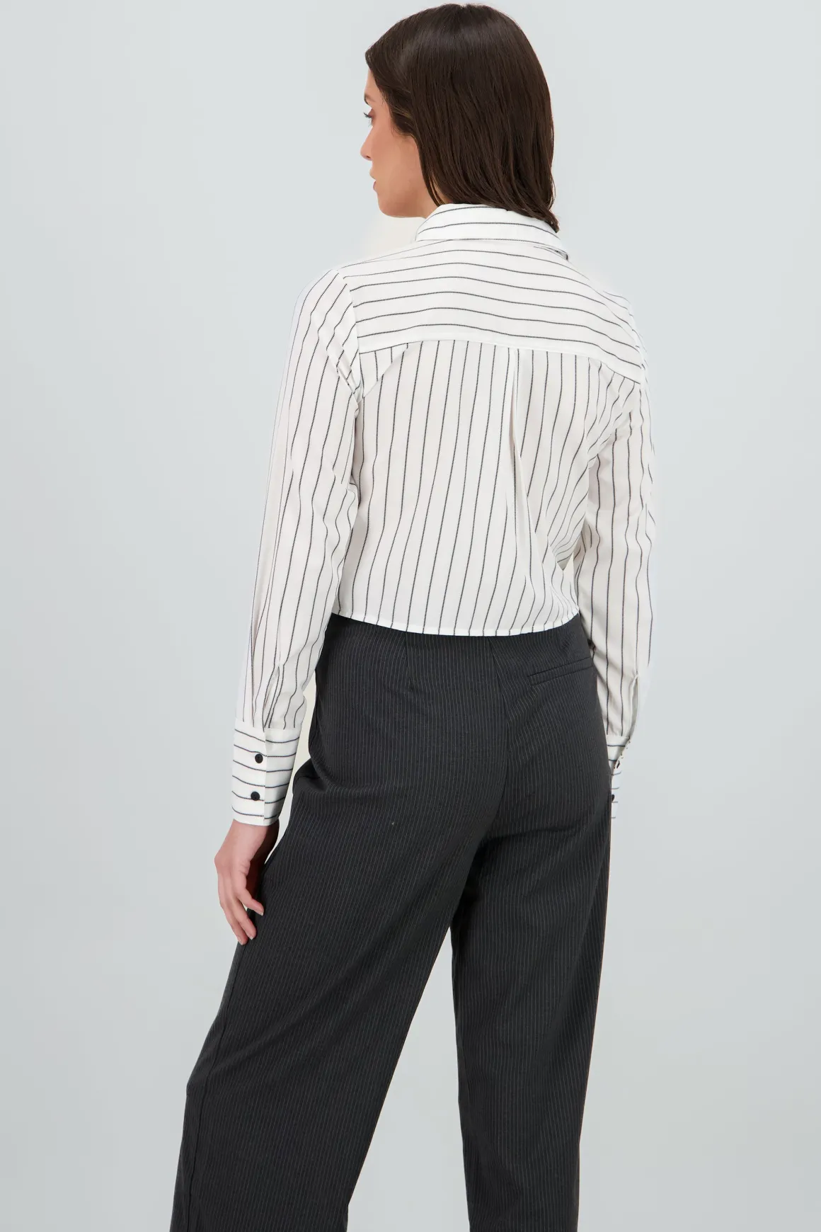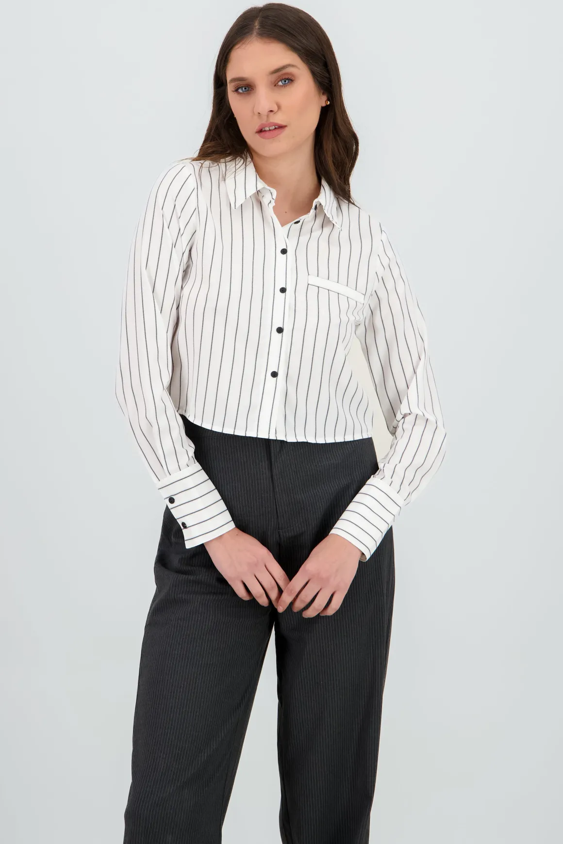 Esta camisa crop es justo lo que necesitas para esos días donde quieres lucir genial sin complicarte. Perfecta para armar looks tanto casuales como un poco más elaborados, se convertirá en tu favorita.