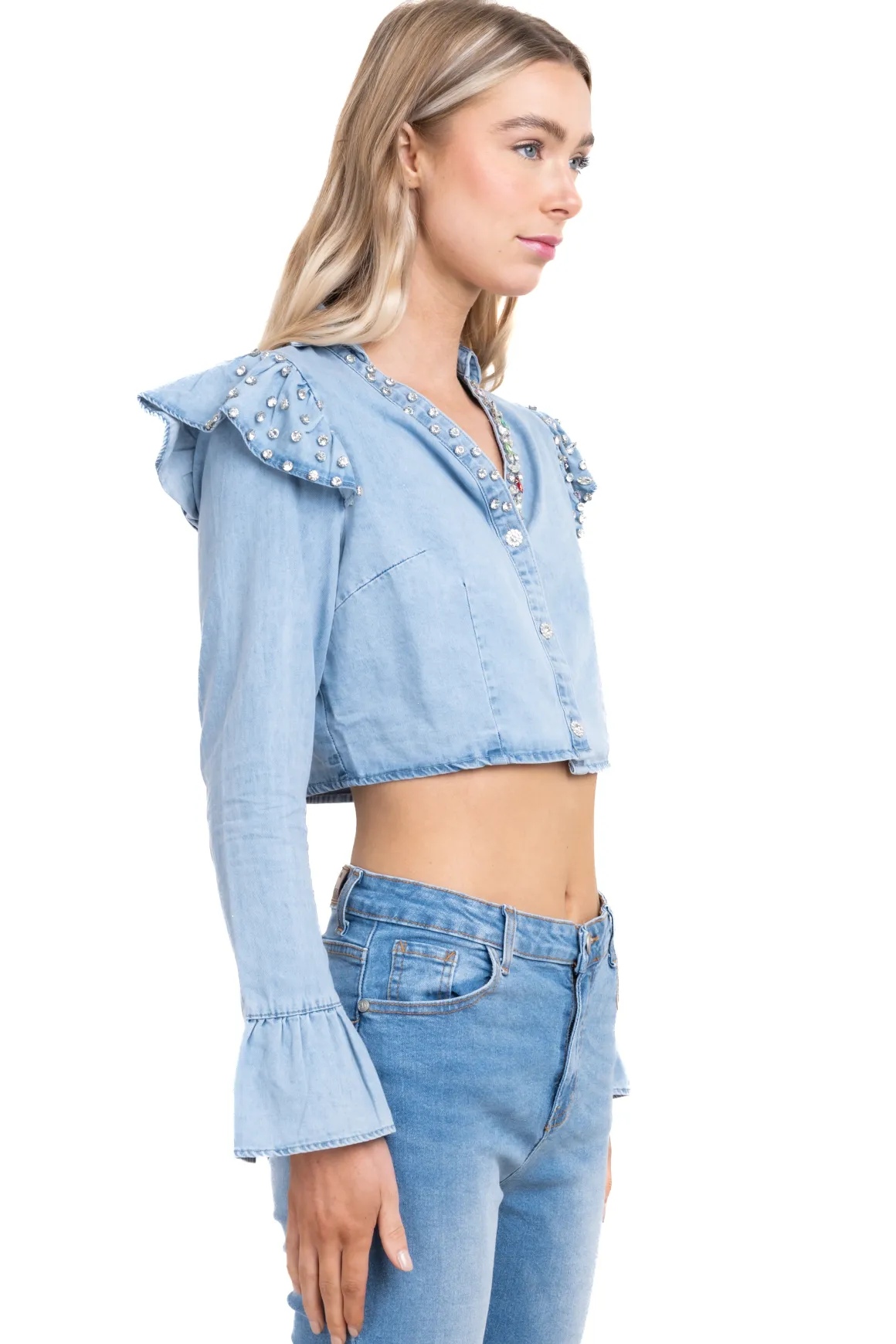 Camisa efecto mezlcilla con brillos