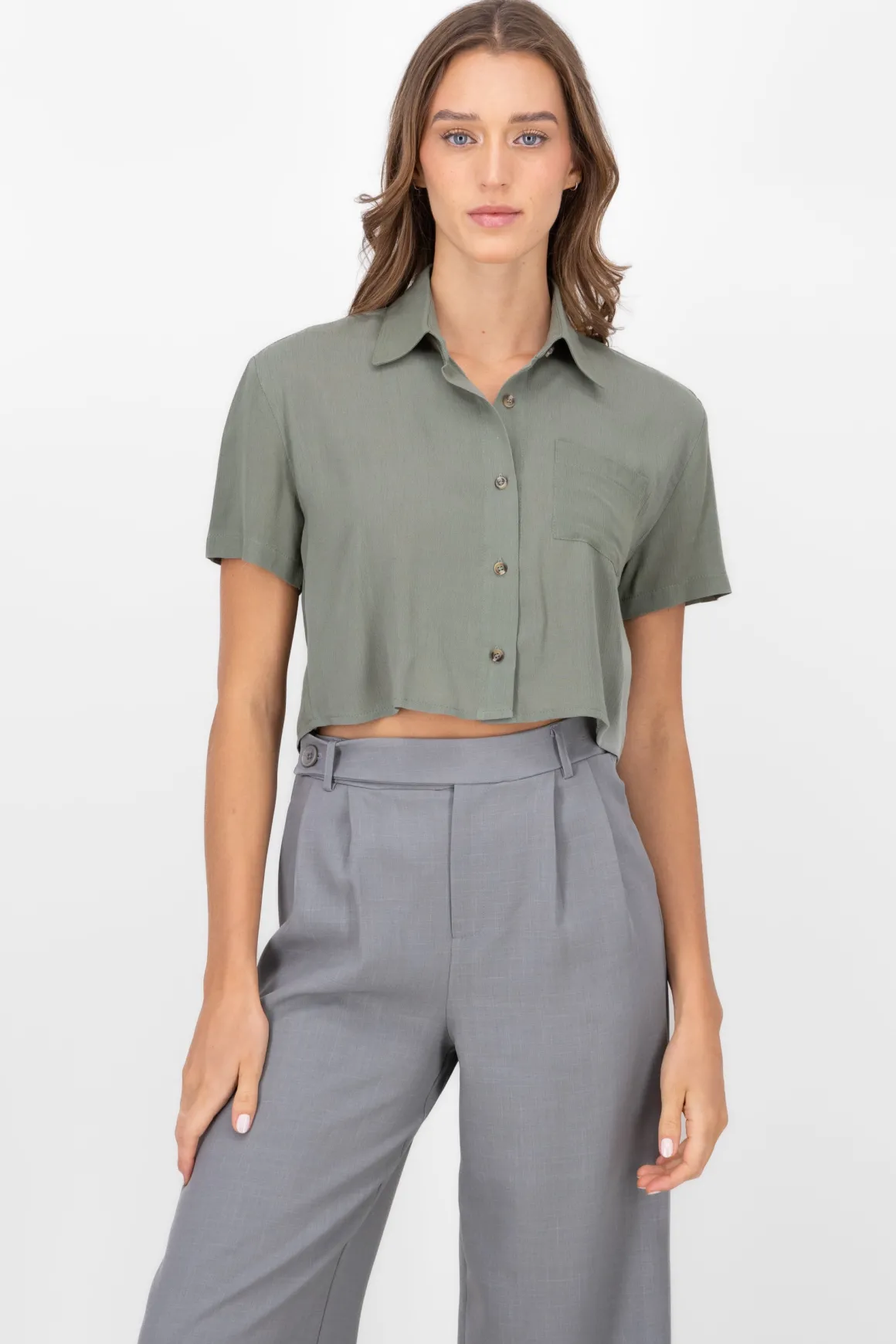 Descubre nuestra camisa lisa de manga corta, perfecta para cualquier ocasión. Con un estilo casual y versátil, esta prenda es ideal para combinar con tus jeans favoritos o una falda. Cuenta con una solapa en el cuello y un cierre frontal mediante botones. Ya sea para un día relajado o una salida con amigas, esta camisa se convertirá en tu aliada.