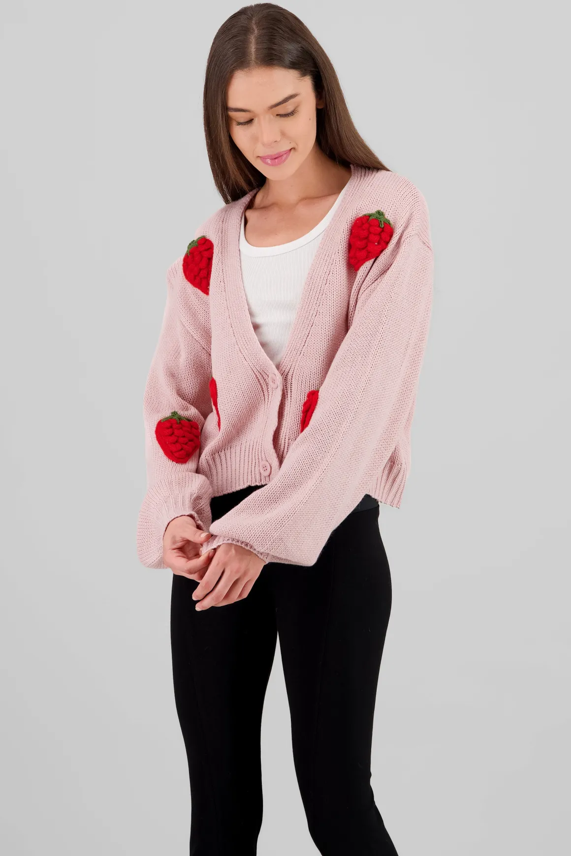 ¡Atrévete a ser el centro de atención con este cárdigan que combina estilo y diversión! Su diseño encantador presenta un vibrante estampado de fresas que transforma cualquier atuendo en una declaración de alegría. Perfecto para esas salidas espontáneas o días de descanso en casa, este cárdigan es la opción ideal para las amantes de lo dulce y lo chic.
