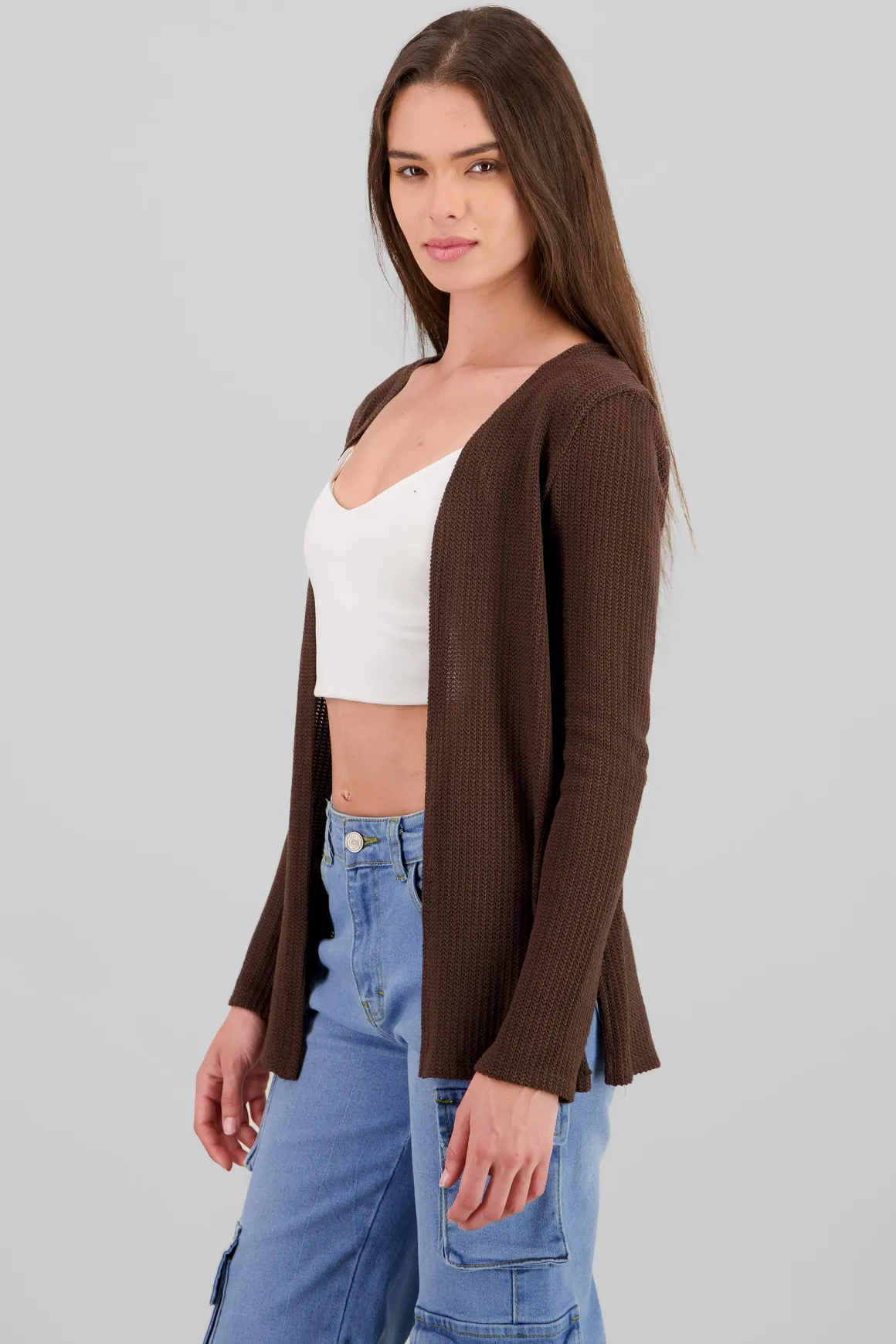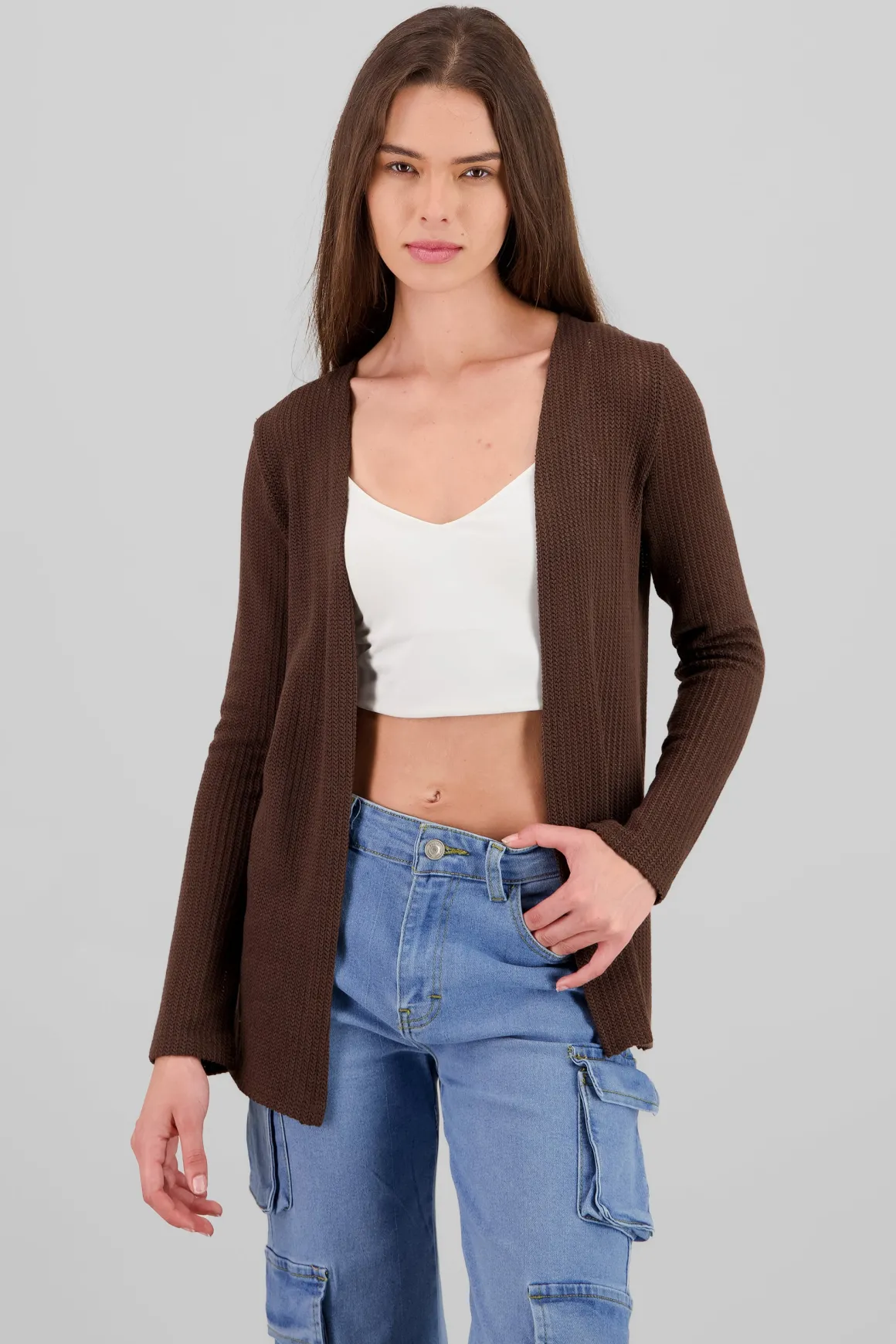 Descubre la prenda perfecta para elevar tu estilo diario: un cárdigan largo tejido de punto que se convierte en el aliado ideal para cualquier ocasión. Su diseño versátil te permite combinarlo fácilmente con tus outfits favoritos, añadiendo un toque acogedor y chic.