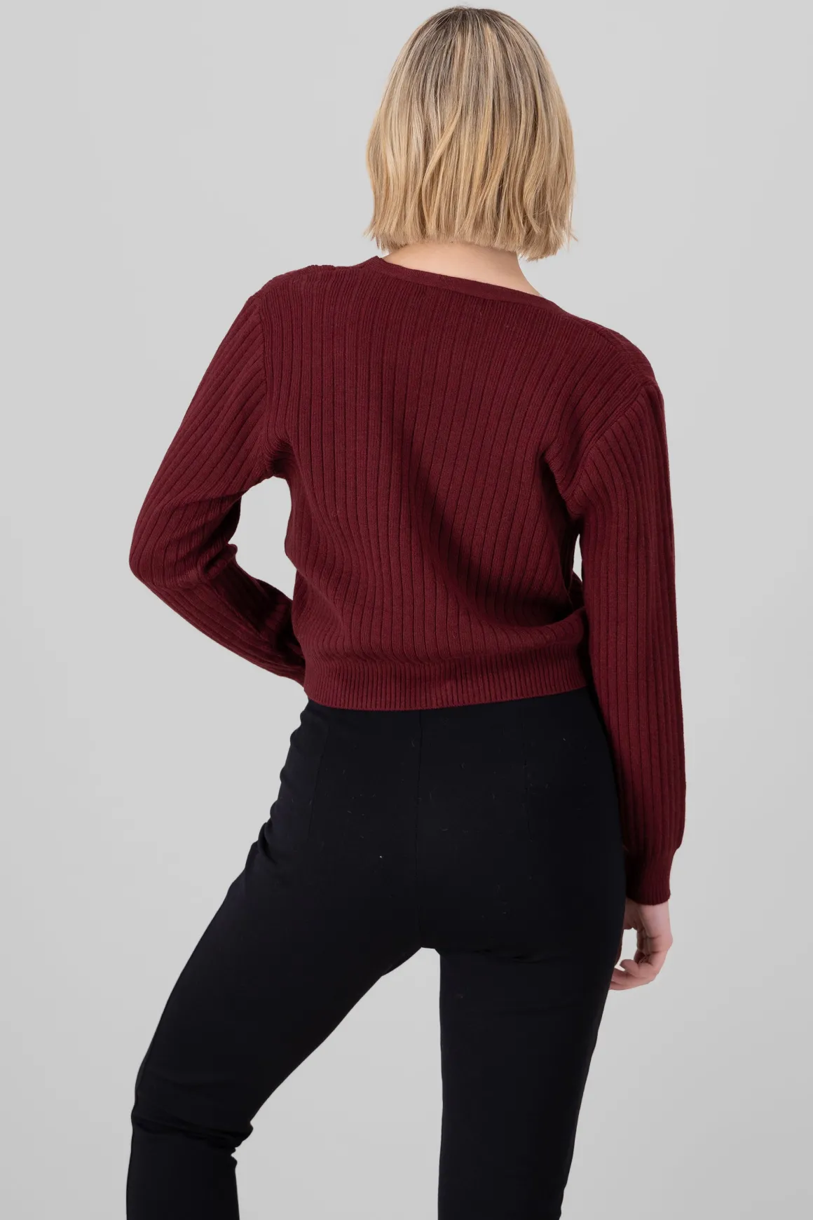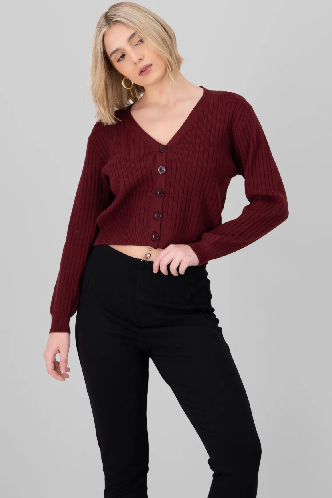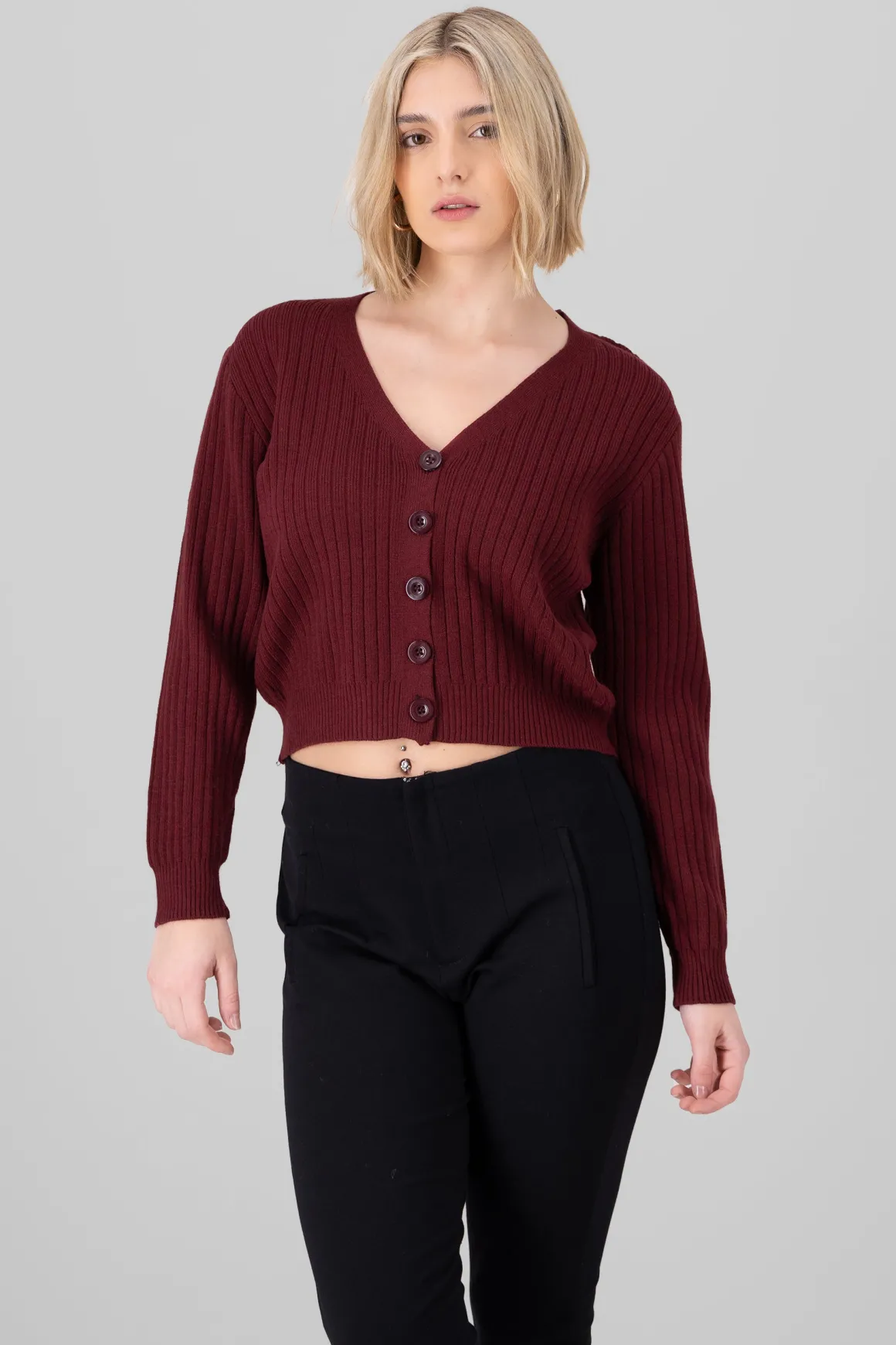 ¡Añade un toque trendy y cómodo con este cárdigan tejido acanalado! Los botones aportan un diseño clásico y chic.