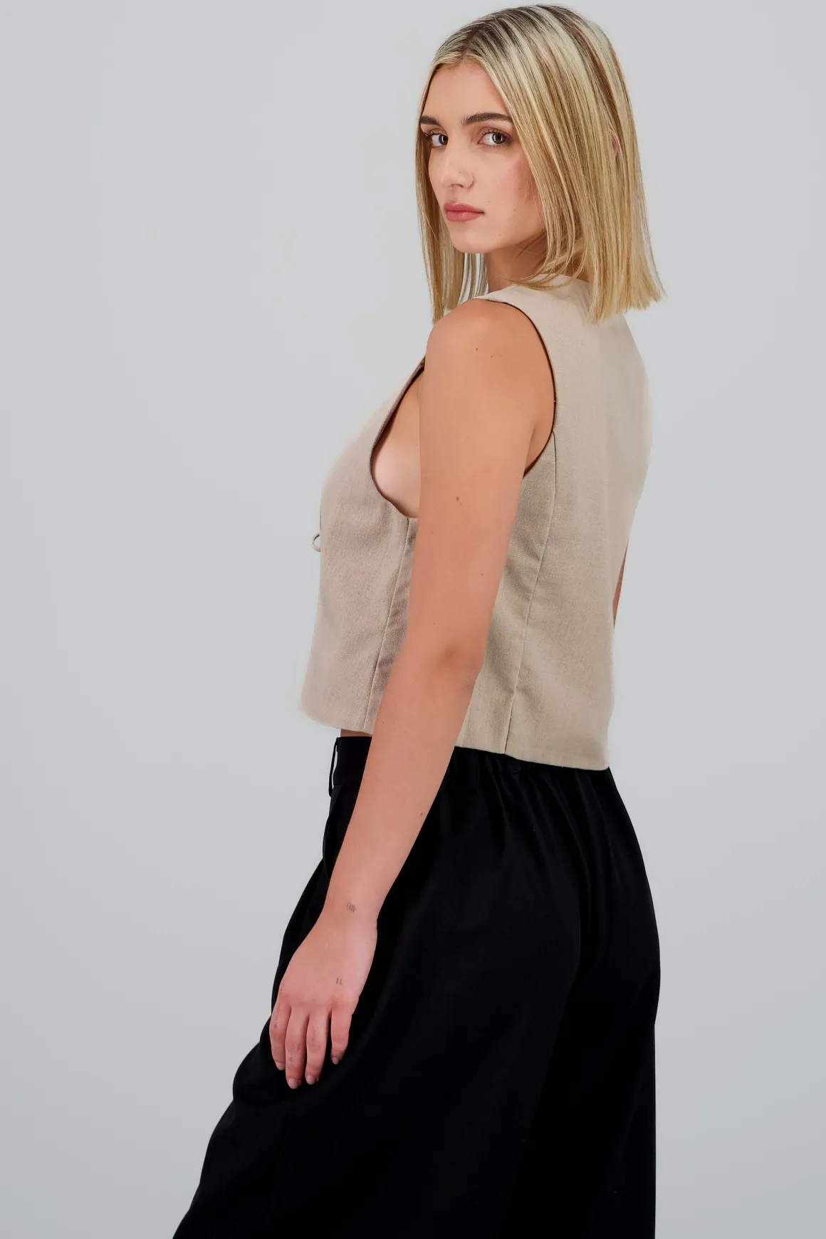 Este chaleco con pinzas es la opción perfecta para quienes buscan un toque único en su guardarropa. Ideal para armar looks que van desde lo casual hasta lo más atrevido, se adapta a cualquier ocasión con facilidad.