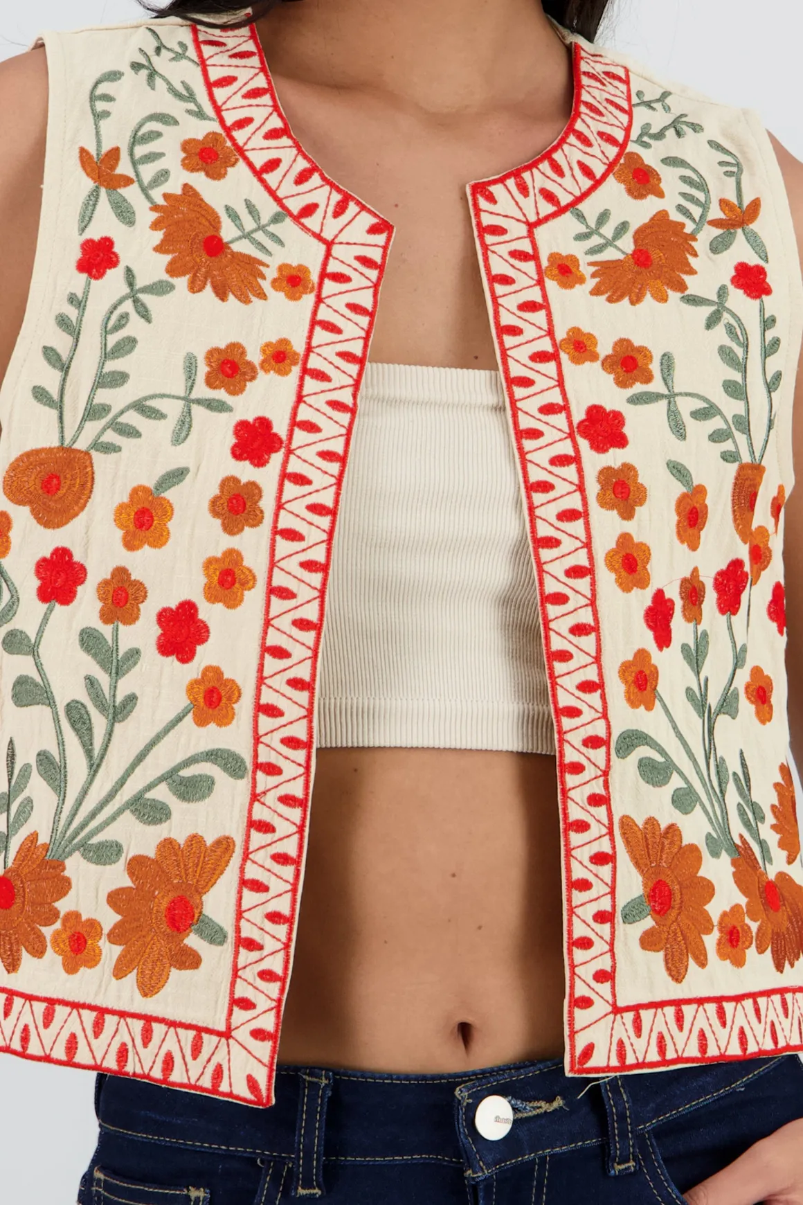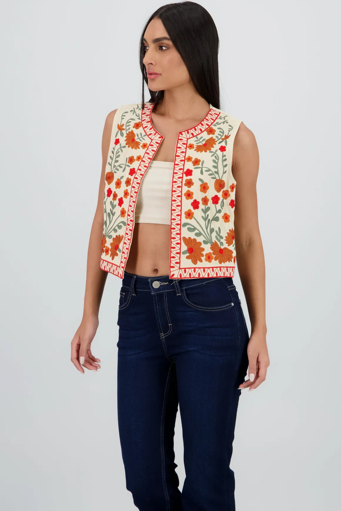 - Bordado de flores que añade un toque único.