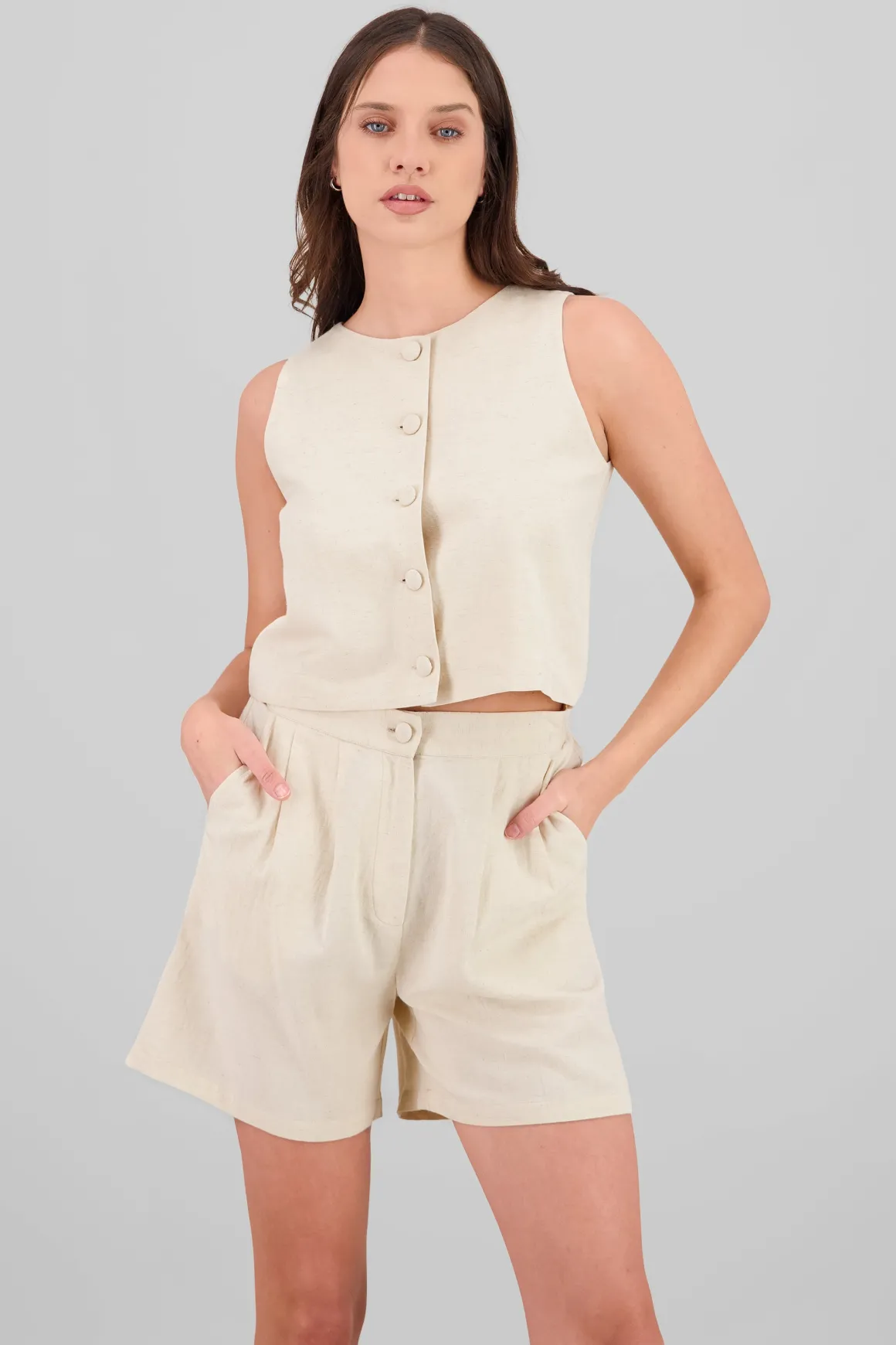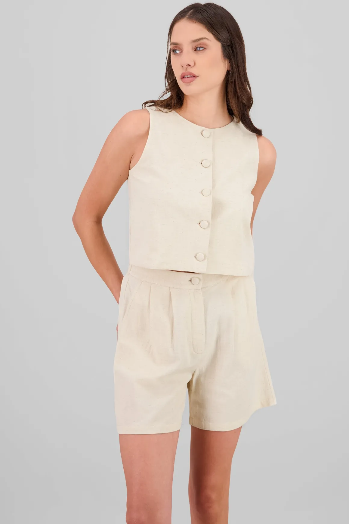 Su diseño minimalista y sofisticado lo convierte en una prenda indispensable en tu armario. Perfecto para combinar con tus looks más variados, este chaleco añade un toque especial a cualquier outfit.
