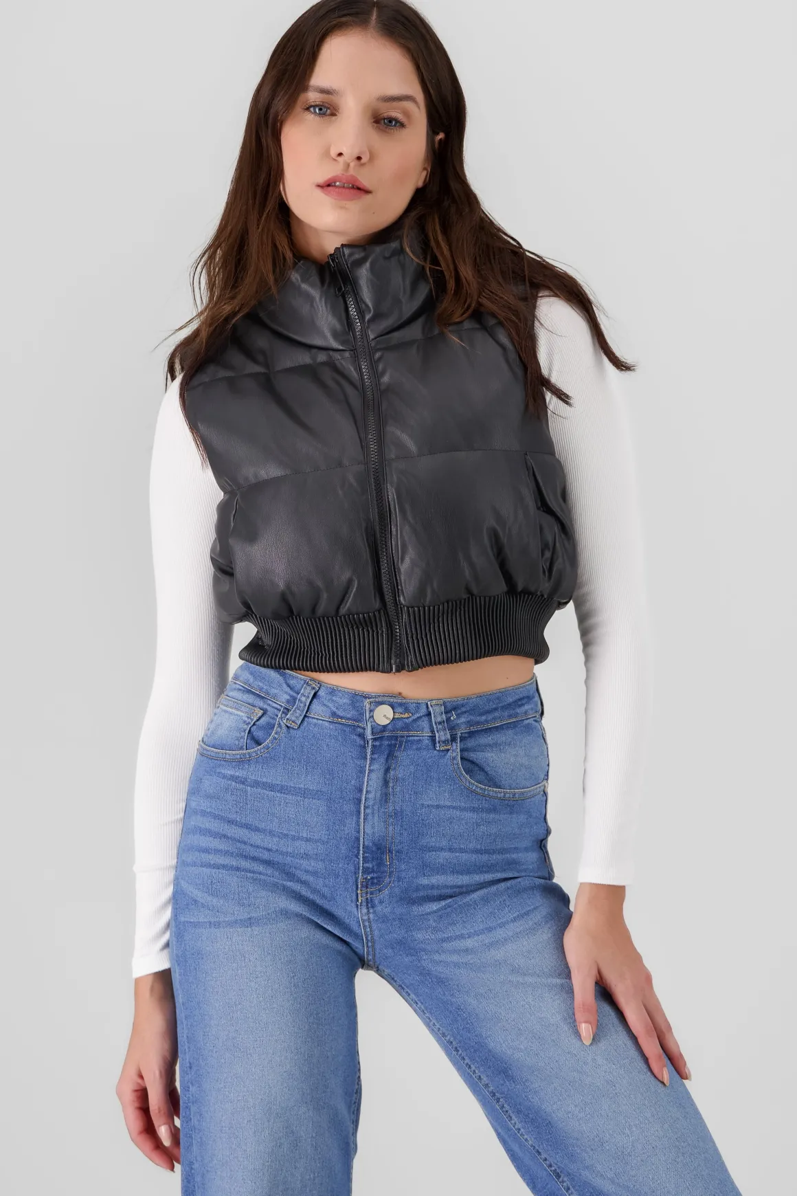 Dale un giro moderno a tu look con nuestro chaleco de efecto piel capitonado, una prenda que mezcla estilo y actitud. Su corte crop lo convierte en la opción perfecta para destacar en cualquier outfit, ya sea sobre una camiseta básica o una blusa más estructurada. El diseño capitonado añade textura y un toque cool que eleva instantáneamente tu estilo. Ideal para esas ocasiones en las que quieres algo cómodo pero lleno de personalidad. ¡Combínalo con jeans de tiro alto o una falda y prepárate para robar miradas!