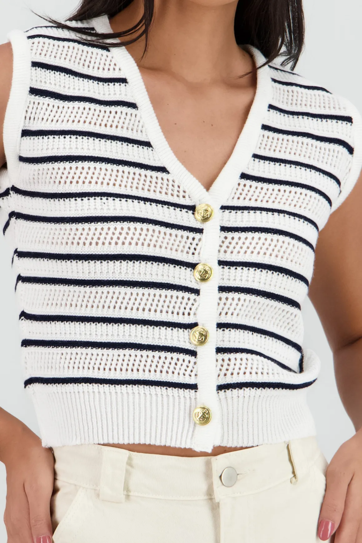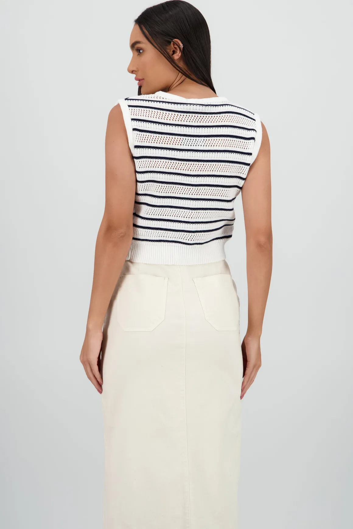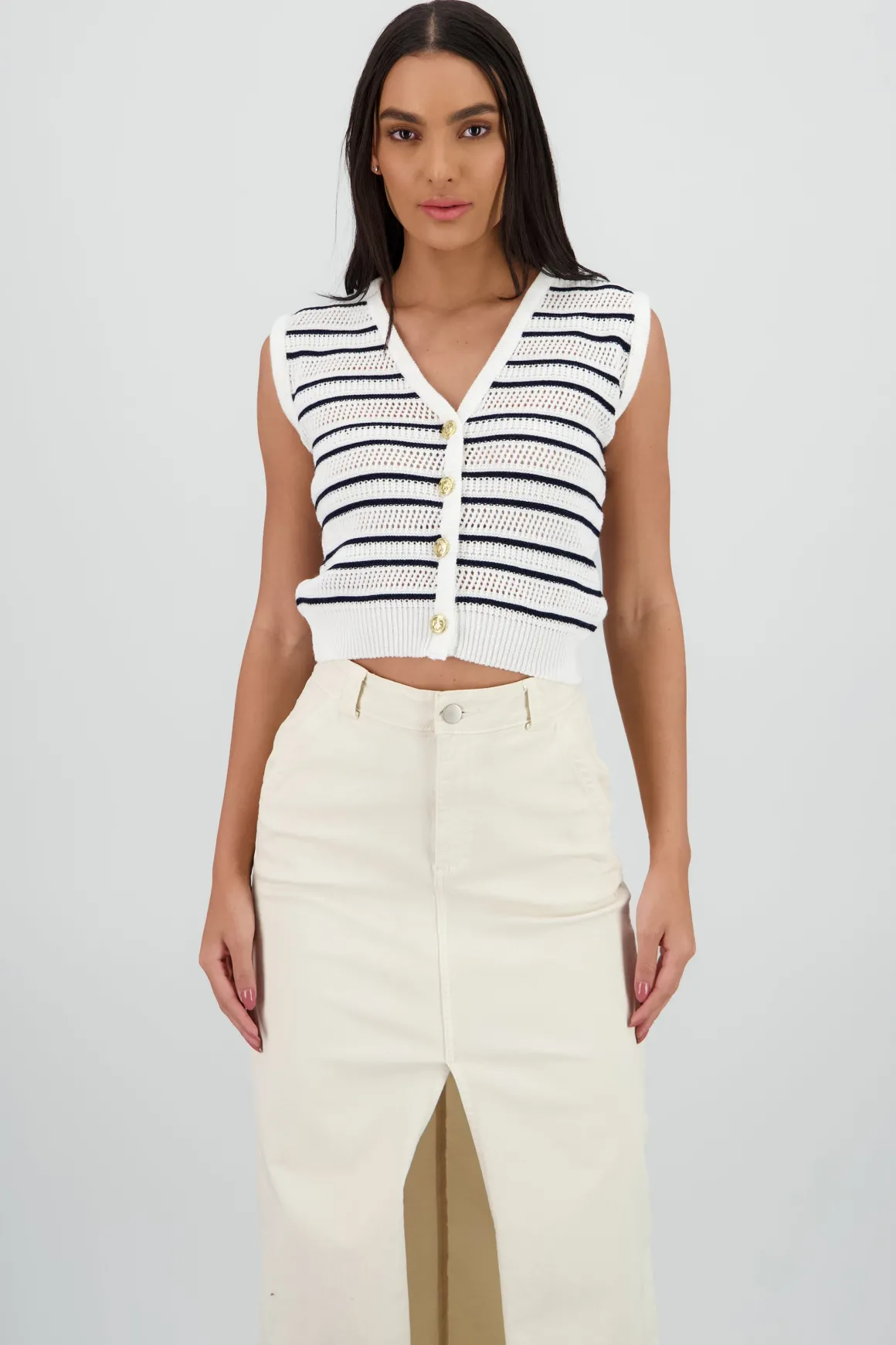 Chaleco tejido de punto con diseño de rayas, corte ceñido y versátil.