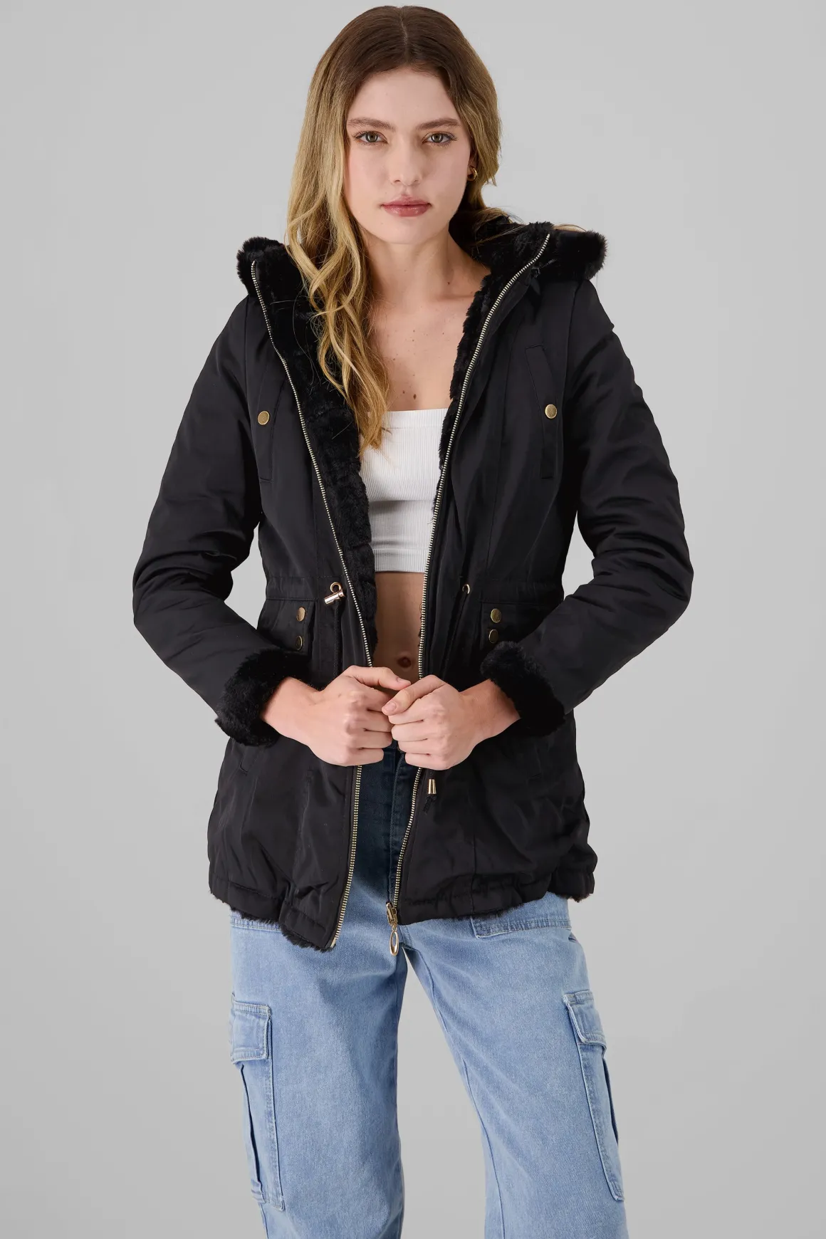 Descubre nuestra chamarra doble vista con detalle de jareta, la elección perfecta para mantener tu estilo actualizado y versátil. Te ofrece una doble vista que te permite lucir dos estilos en uno. El detalle de jareta en la cintura agrega un toque único y favorecedor a tu outfit.