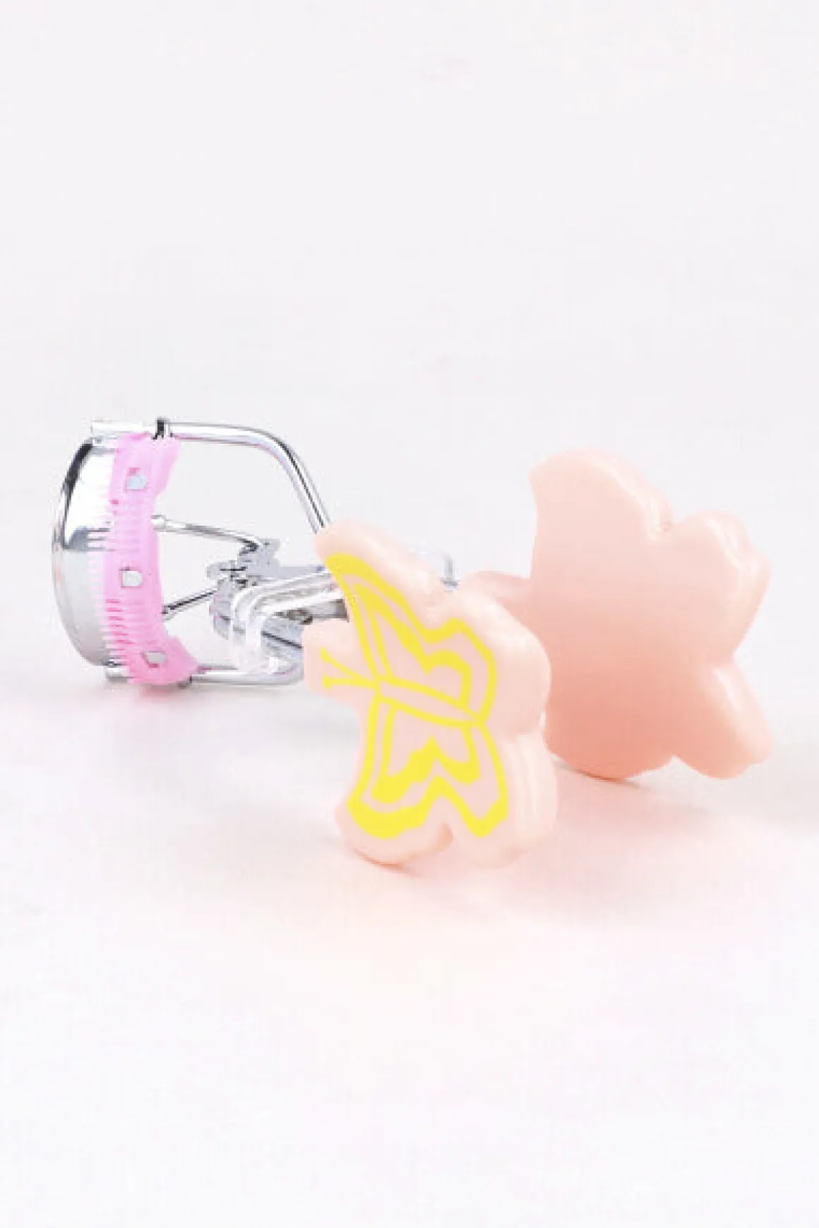 Enchinador de pestañas metálico con mariposa.