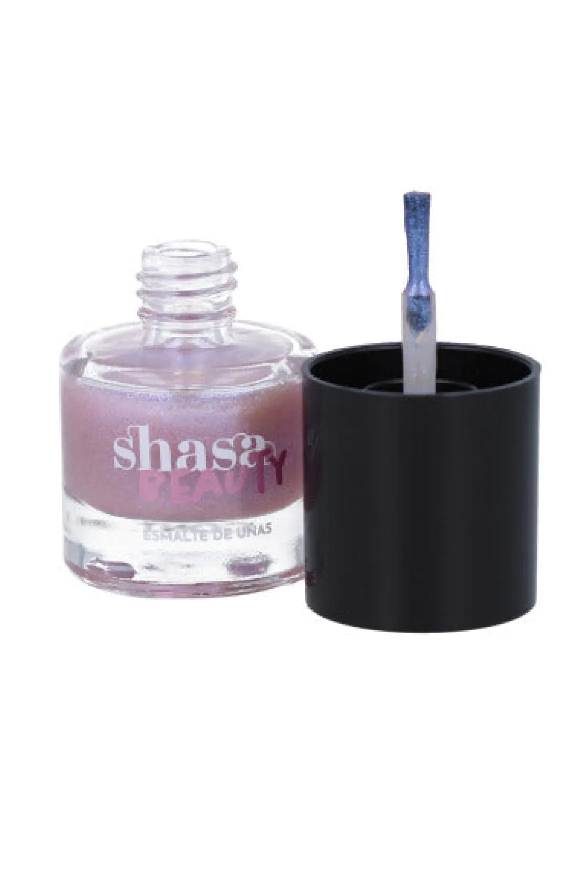 Esmalte para uñas en tono coral con brillos. Acabado brillante tornasol. Contenido 10 ml. Producto libre de crueldad animal.