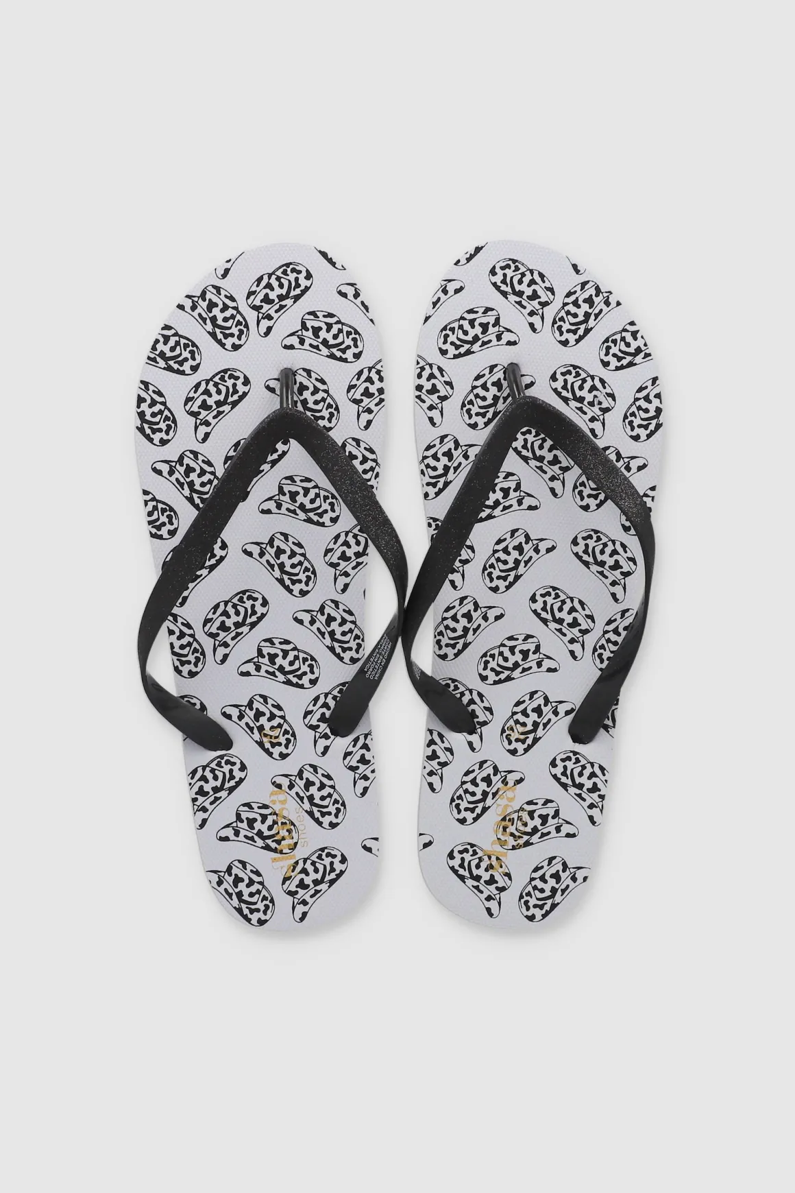 Flip flops pata de gallo con estampado de sombreros vaqueros.