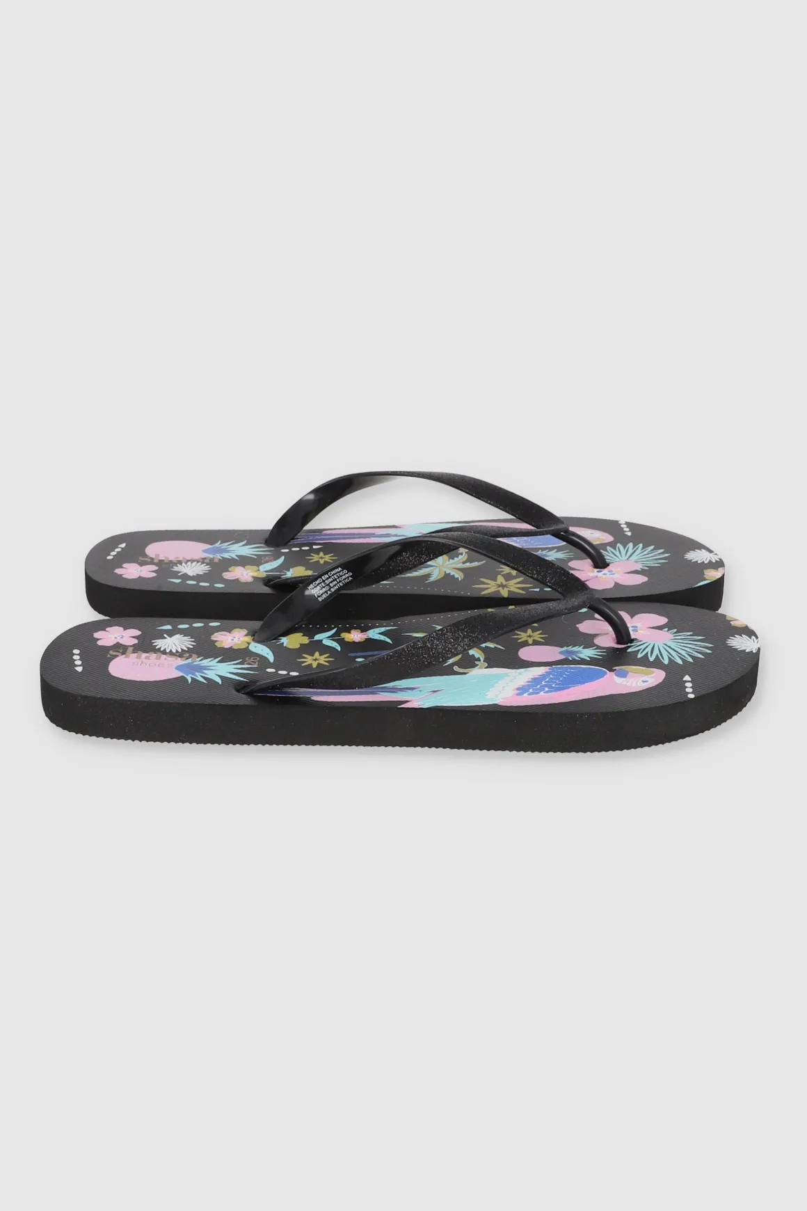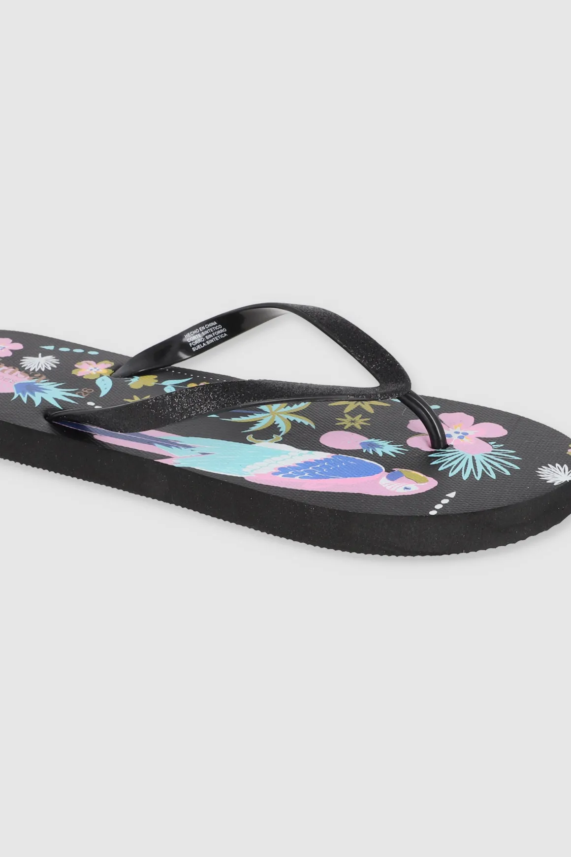Dale un toque exótico a tus pies con estas flip flops de tucán. Sus cintas con glitter añaden el toque glam ideal.