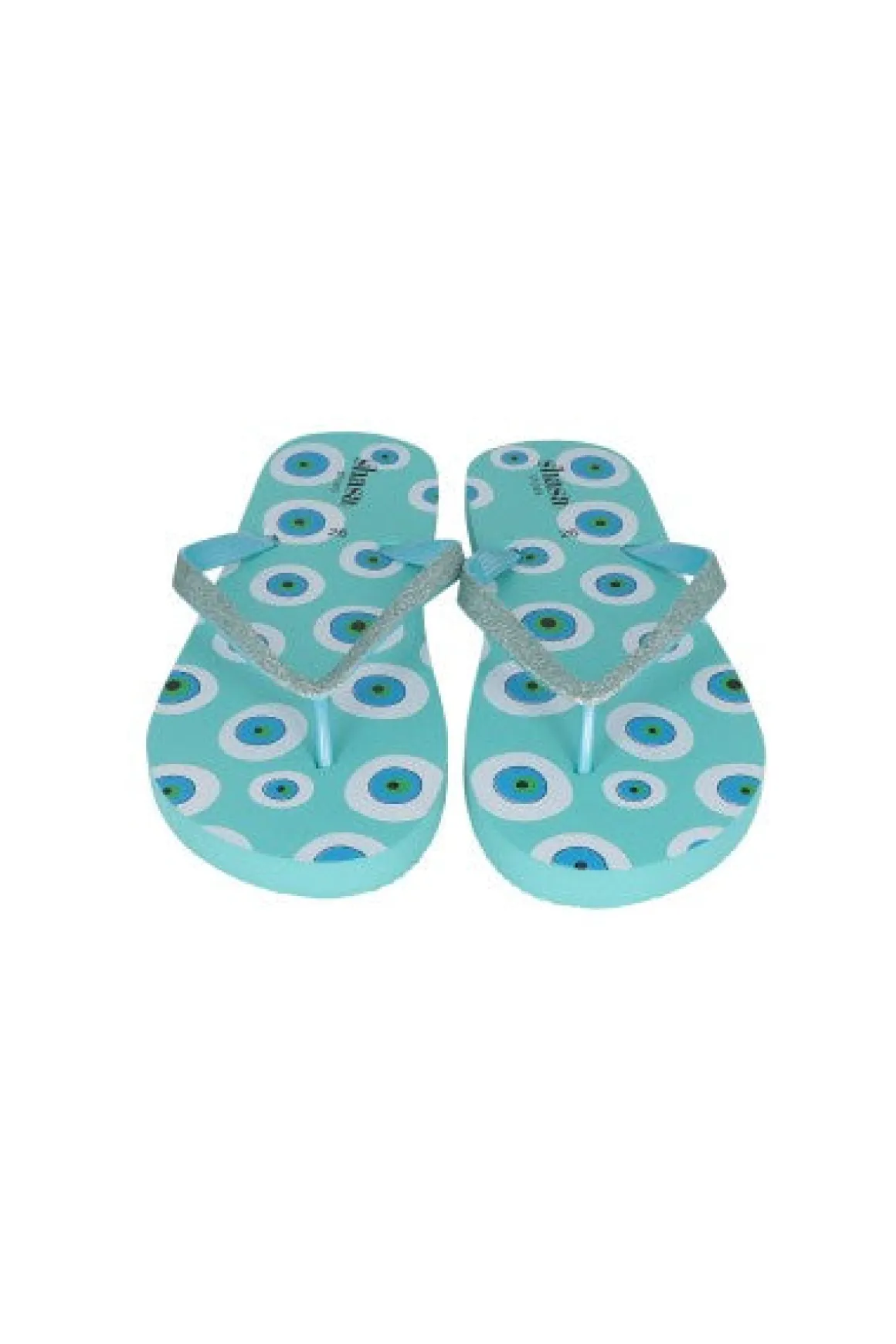 Flip flops pata de gallo con estampado de ojitos turcos.