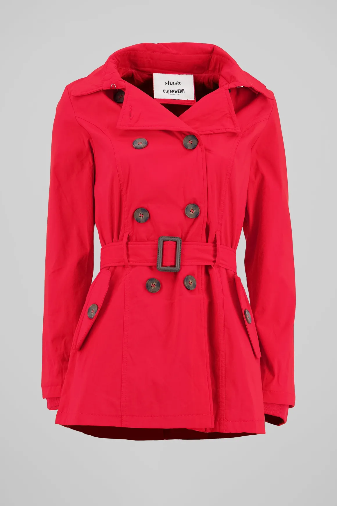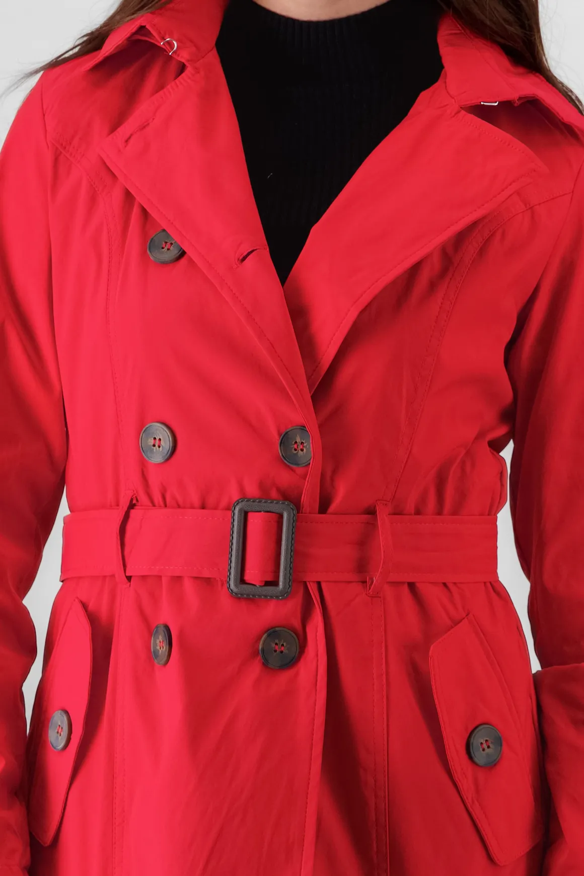 Esta gabardina monocolor es la prenda ideal que estabas buscando. Con un diseño corto y moderno, cuenta con un gorro que te protegerá con estilo. Los botones combinados a tono le dan un toque único, mientras que el cinturón ajustable resalta tu figura y agrega un detalle chic a tu look.