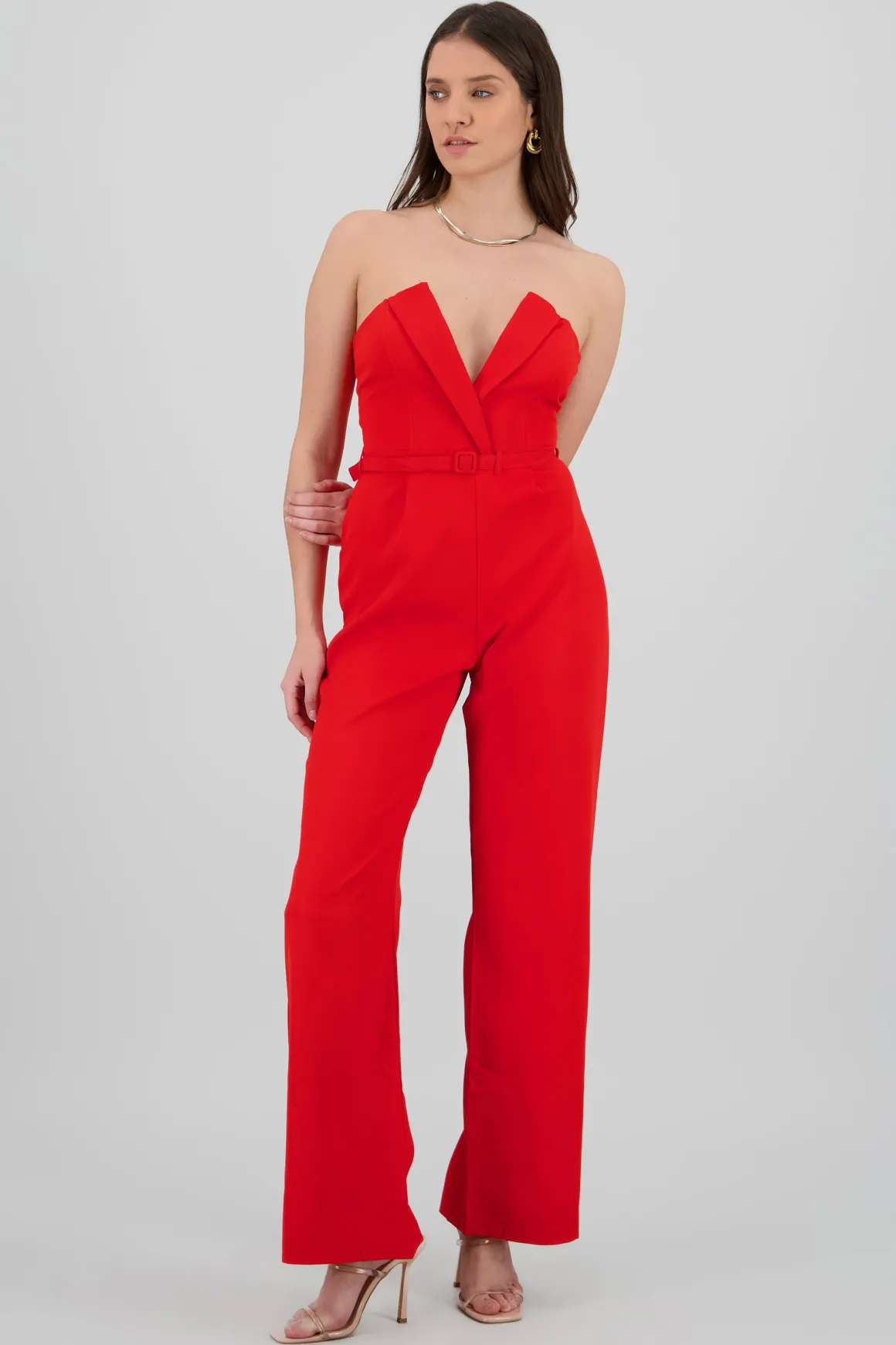 Este jumpsuit es perfecto para esas ocasiones en las que quieres sentirte cómoda y lucir increíble. Su diseño strapless y escote en V te dan un toque audaz y chic sin esfuerzo.
