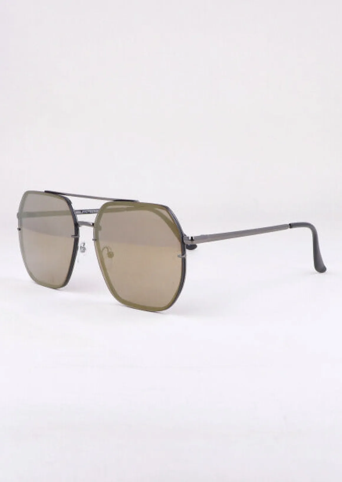 Lentes aviador redondos tintados con almohadillas transparentes y patas delgadas..