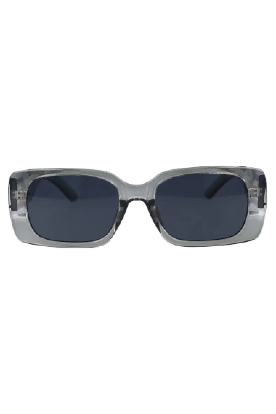 Lentes de sol rectangulares con mica oscura. Patilla ancha asimétrica.