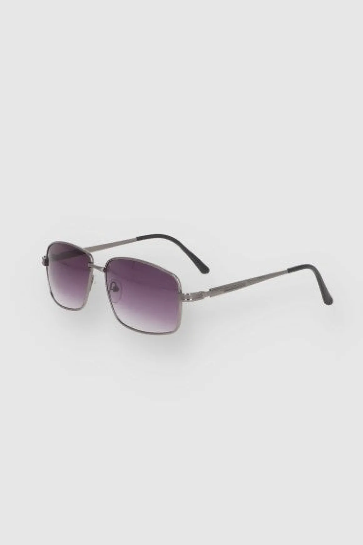 Lentes retro rectangulares con mica tintada, arco con almohadillas transparentes y patillas delgadas..