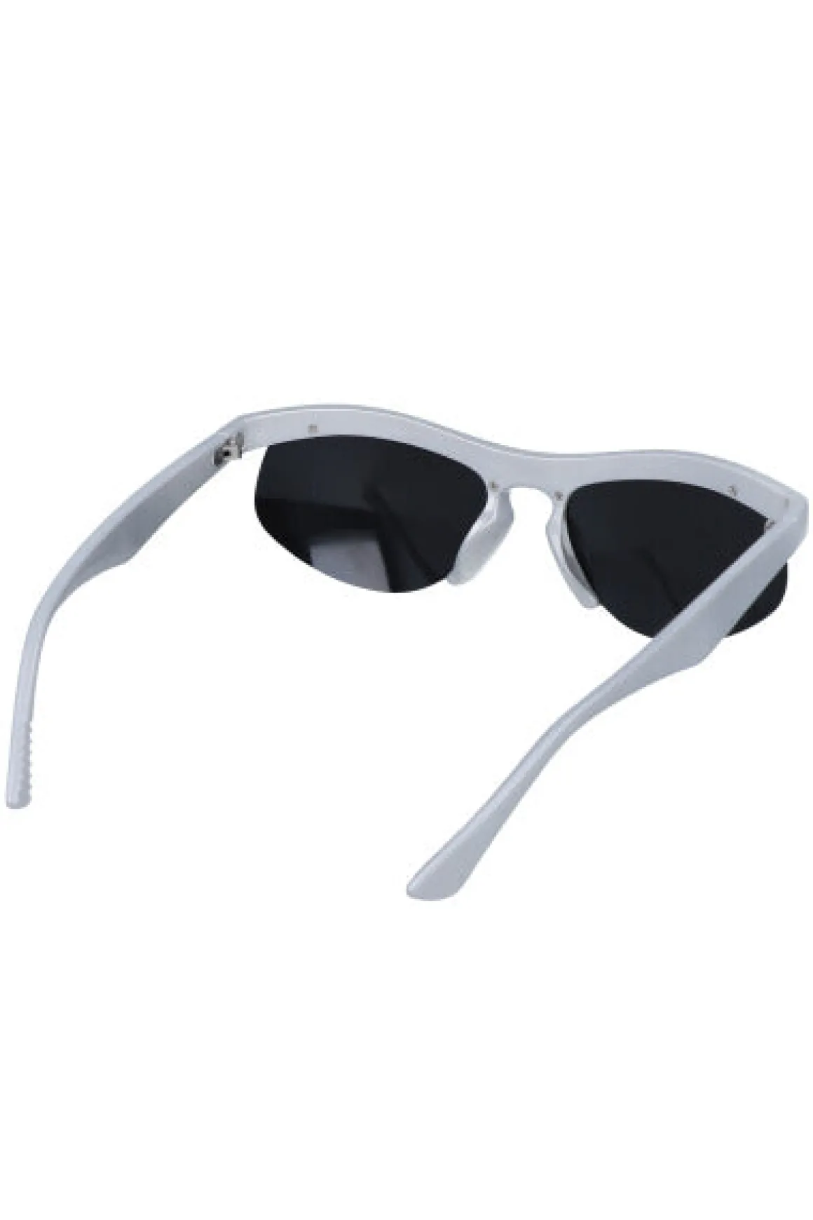 Lentes de sol ovalados, armazon en la parte superior y soportes nasales. Micas tintadas.