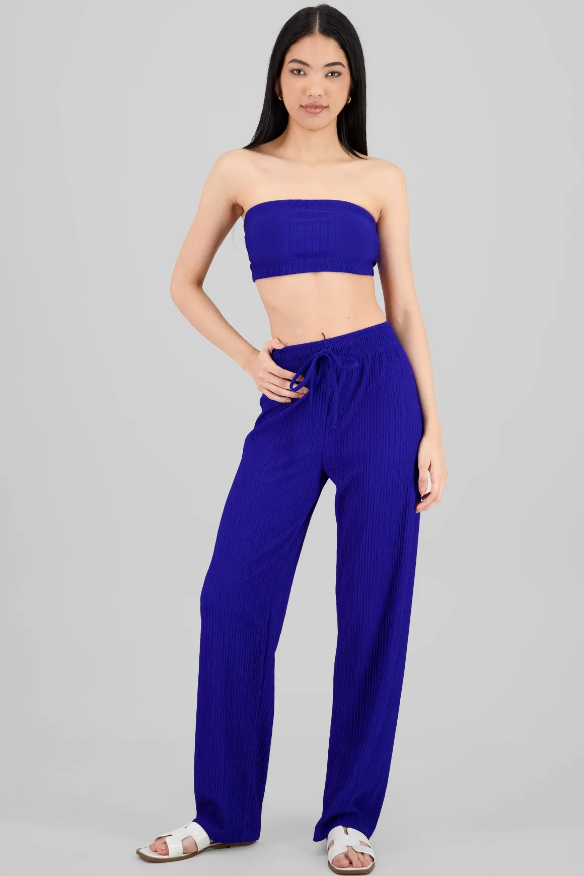 Descubre el encanto de un pantalón que va más allá de lo convencional. Con un diseño amplio y una textura envolvente, este pantalón es el aliado perfecto para cualquier ocasión.