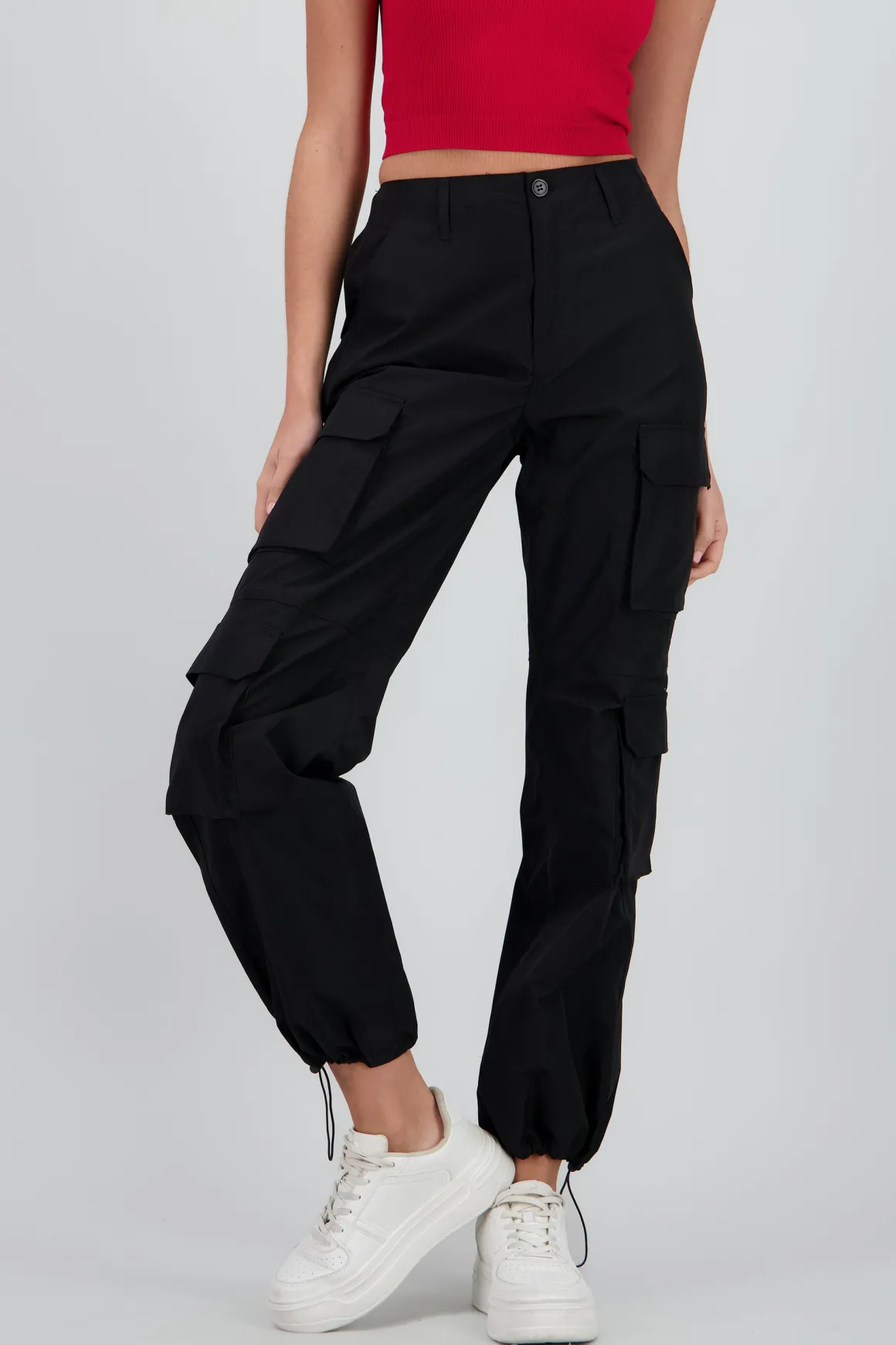 Descubre nuestro Pantalón parachute cargo con multibolsillos, perfecto para llevar todo lo que necesitas de manera cómoda y segura. Este pantalón cuenta con: